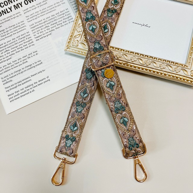 \ 世界に一つのスマホショルダー ♡ / 一点一点、丁寧に仕上げたインド刺繍リボンのショルダーストラップができました! 繊細な刺繍とスパンコールが美しく映えるインドリボンに、柔らかく上品なフェイクレザーを裏地として合わせた、他にはない特別なデザイン。 仮縫いの糸をひとつひとつ丁寧にほどき、縫い目がきれいに見えるよう工夫して仕上げているため、幅も均等で美しい仕上がりです。 ハンドメイドならではの温もりとこだわりが詰まった、まさに「世界に一つ」のショルダー。 透け感のあるチュール素材が軽やかで、いつものスマホやバッグがぐっと華やかになります。 お出かけやイベント、ギフトにもぴったりなアイテムです♡ お気に入りの一本を見つけて、日々のコーディネートに彩りをプラスしてみませんか?♡ ご質問などございましたら、お気軽にメッセージください♪ ■ 使用シーンいろいろ ・スマホショルダーとして ・バッグのショルダーストラップとして ・社員証や鍵をつけてネックストラップとしても◎ ・カメラストラップとして ・ショルダーバッグの紐として ・ギターのストラップとして 使い方は自由自在。あなたのスタイルに合わせてお楽しみいただけます♪ ■ 仕様 ・幅:約20mm ・長さ:約75〜134cm(移動カンで調整可能) ※金具部分含む ※ハンドメイドのため、多少の個体差がございます ・金具カラー:高級感のあるマットゴールド ・裏地:フェイクレザー ■ カラー ・画像をご確認ください。 ■ ラッピングについて プレゼント用にもおすすめ♡ ご希望の方は、オプションより「ギフトラッピング」をご選択ください。 ■ ストラップホルダーについて スマホケースとスマホ本体の間に挟んで使用できるストラップホルダーをご希望の方は、+200円で追加可能です。 ご希望の方は、ご購入時にオプションからお選びください。 ■ ご購入前にご確認ください すべて一点もののハンドメイドのため、個体差がございます。 インド刺繍リボンは海外製のため、以下のような特徴が見られる場合があります: ・歪み ・糸の未処理 ・刺繍のズレ ・スパンコールの取れ ・幅の不均一 など ■ お取り扱いの注意 ・刺繍リボンは繊細な素材のため、摩擦や引っ掛かりにご注意ください。 ・ラメ加工が施されている部分は、使用や摩擦により剥がれ落ちる場合があります。 ・長さ調節の際は、優しくお取り扱いください。 ■ その他 ・できる限り実物に近い色味で撮影しておりますが、ご使用のモニター環境により色味が異なって見える場合があります。 ・不具合を除き、返品・交換はお受けしておりません。予めご了承ください。 ■ 発送・注文に関する情報や注意事項 ・ご注文確認後、数日以内に発送いたします。発送先の住所に誤りがないかご確認ください。 ・返品は未使用品に限り、商品到着後7日以内にご連絡ください。