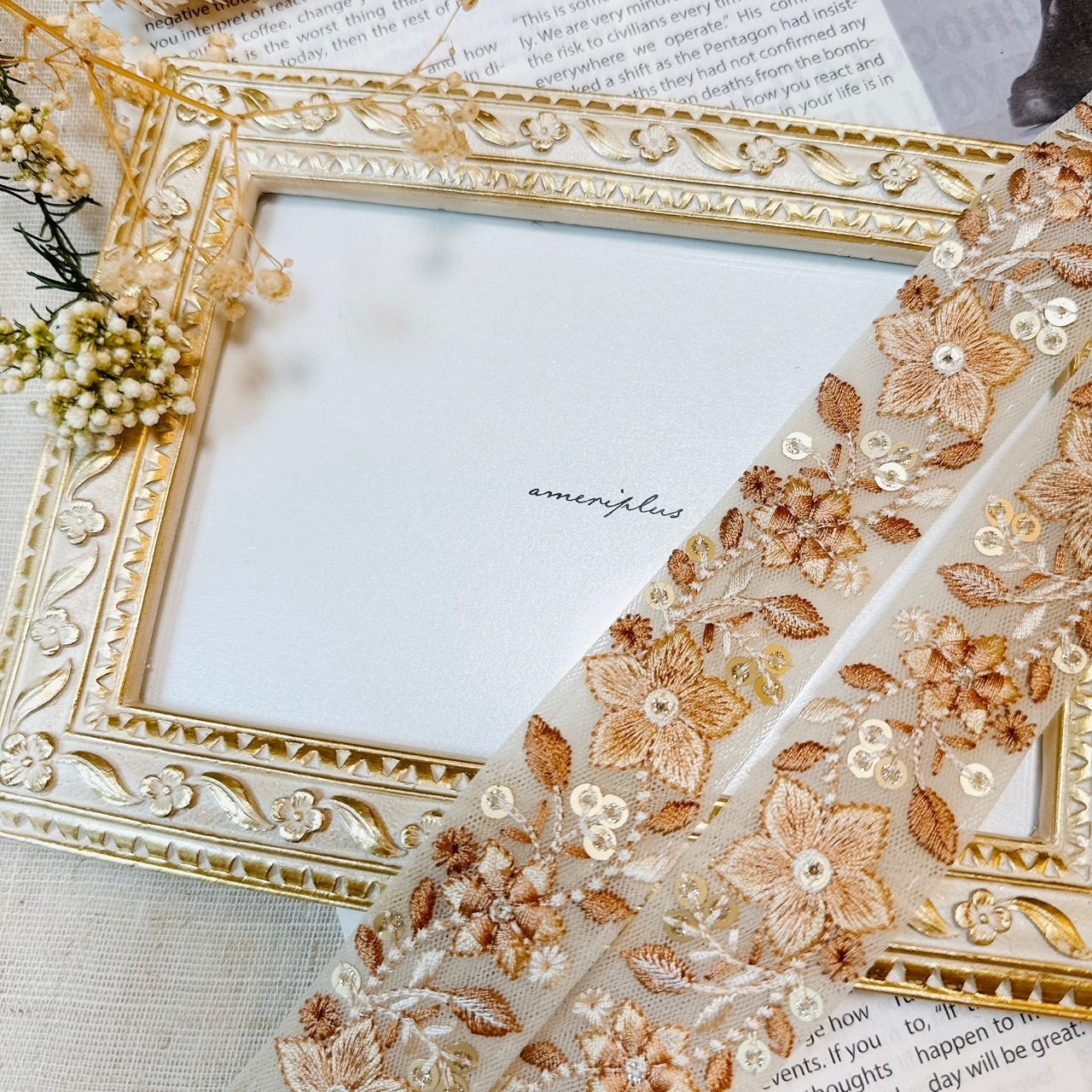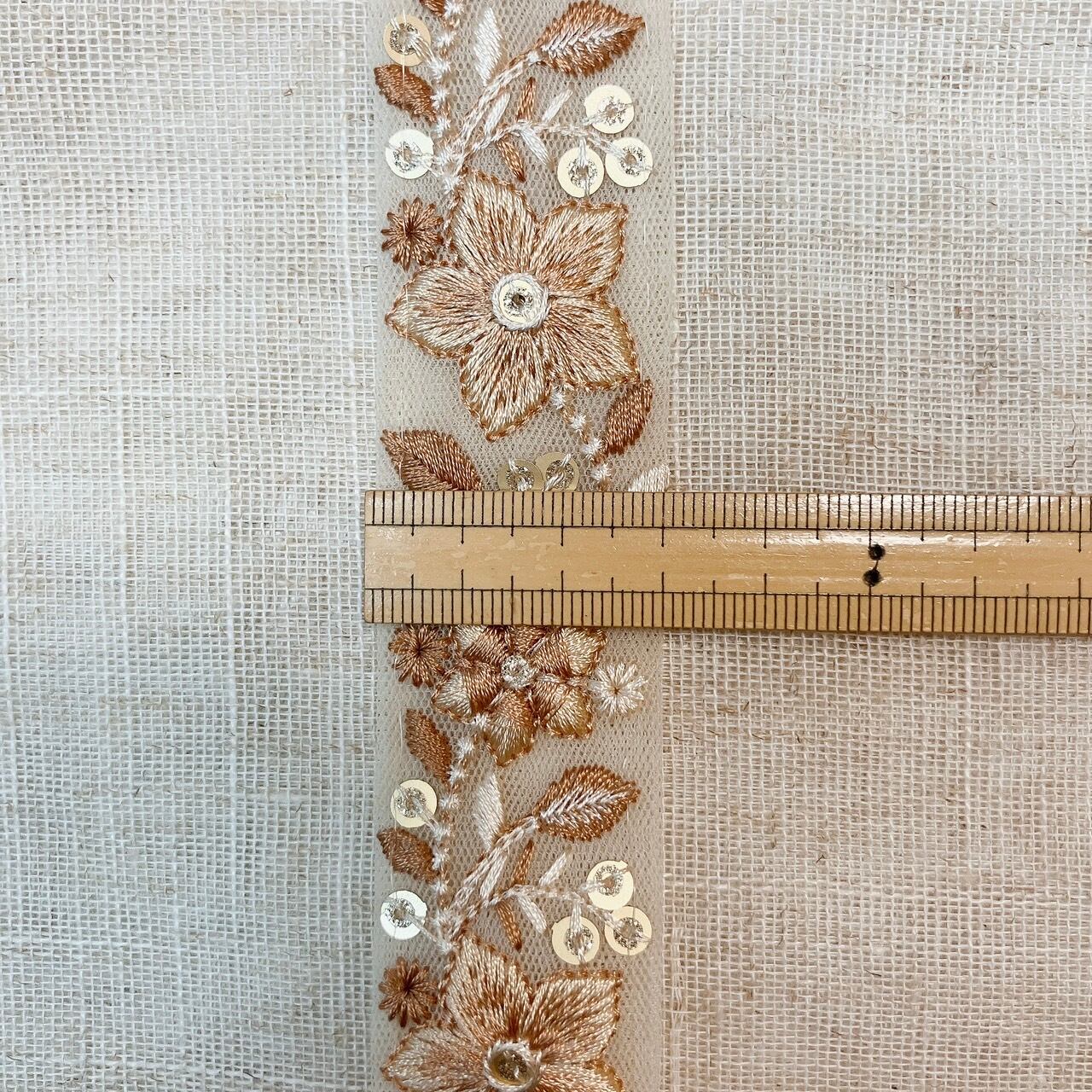 フローラルレースリボン [シャンパンベージュ]インド刺繍リボン A_0003