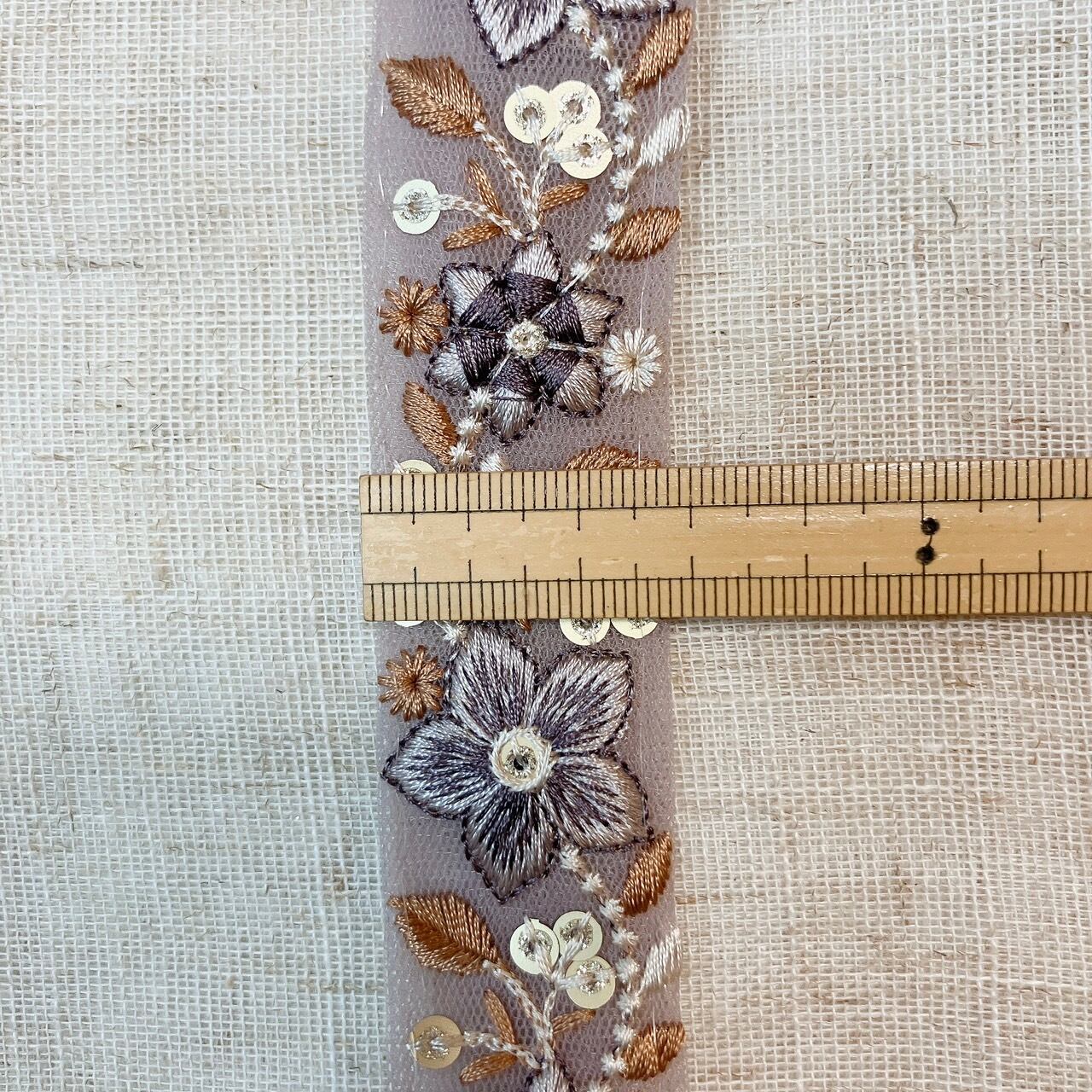フローラルレースリボン [ラベンダーミルク]インド刺繍リボン A_0004