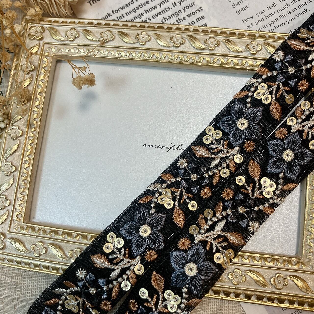 インドから直輸入した、カラフルで繊細なミシン刺繍が魅力のリボンです。