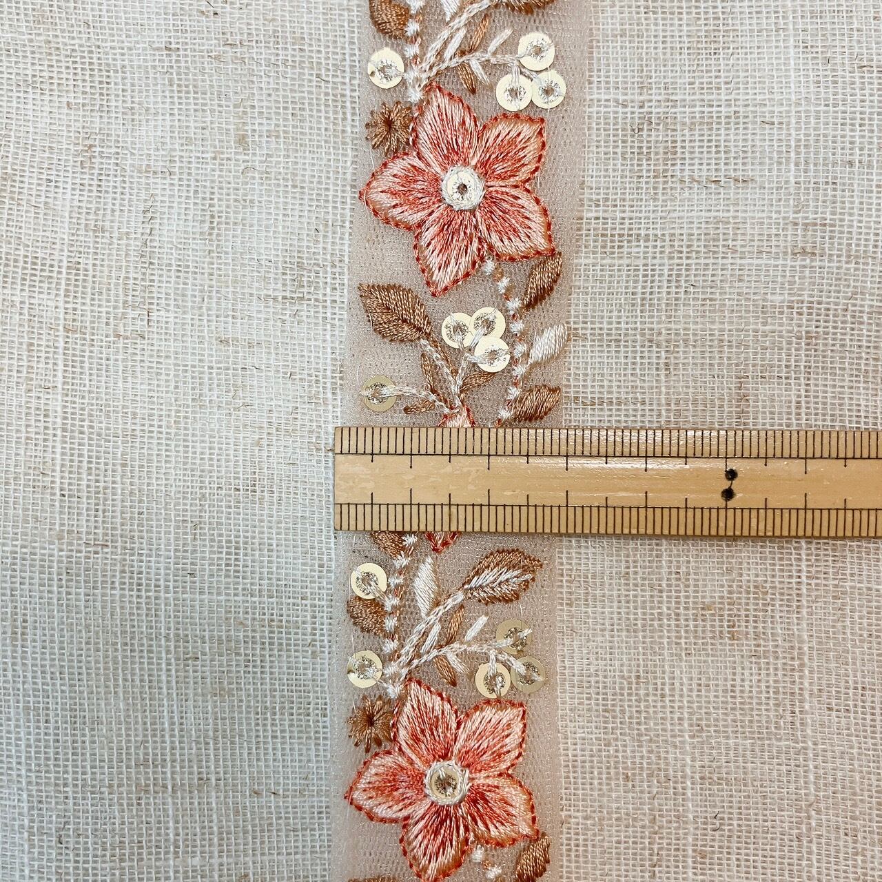 フローラルレースリボン [ピーチブロッサム]インド刺繍リボン A_0011