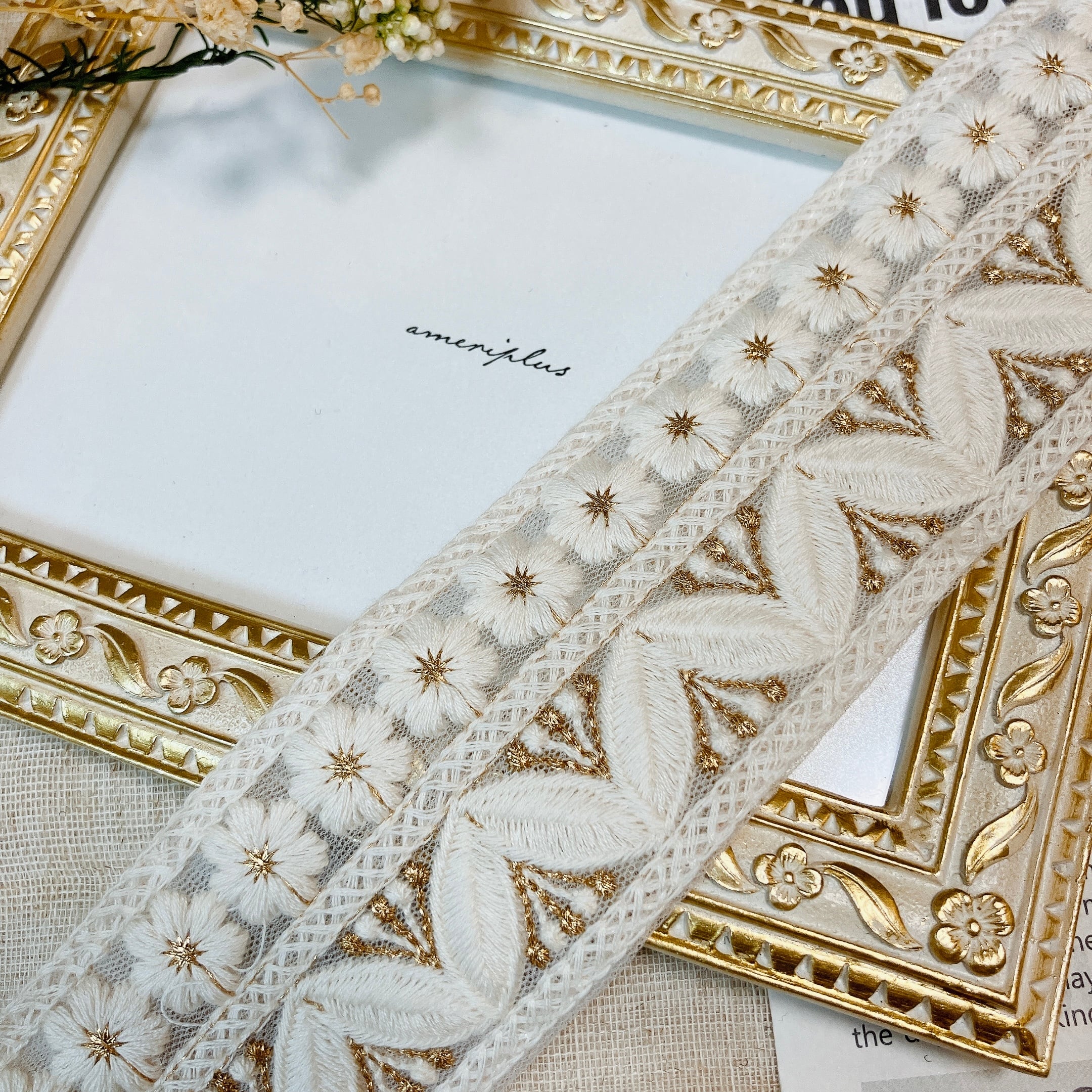 【再入荷】デイジーレース [ミルキーホワイト]インド刺繍リボン A_0014