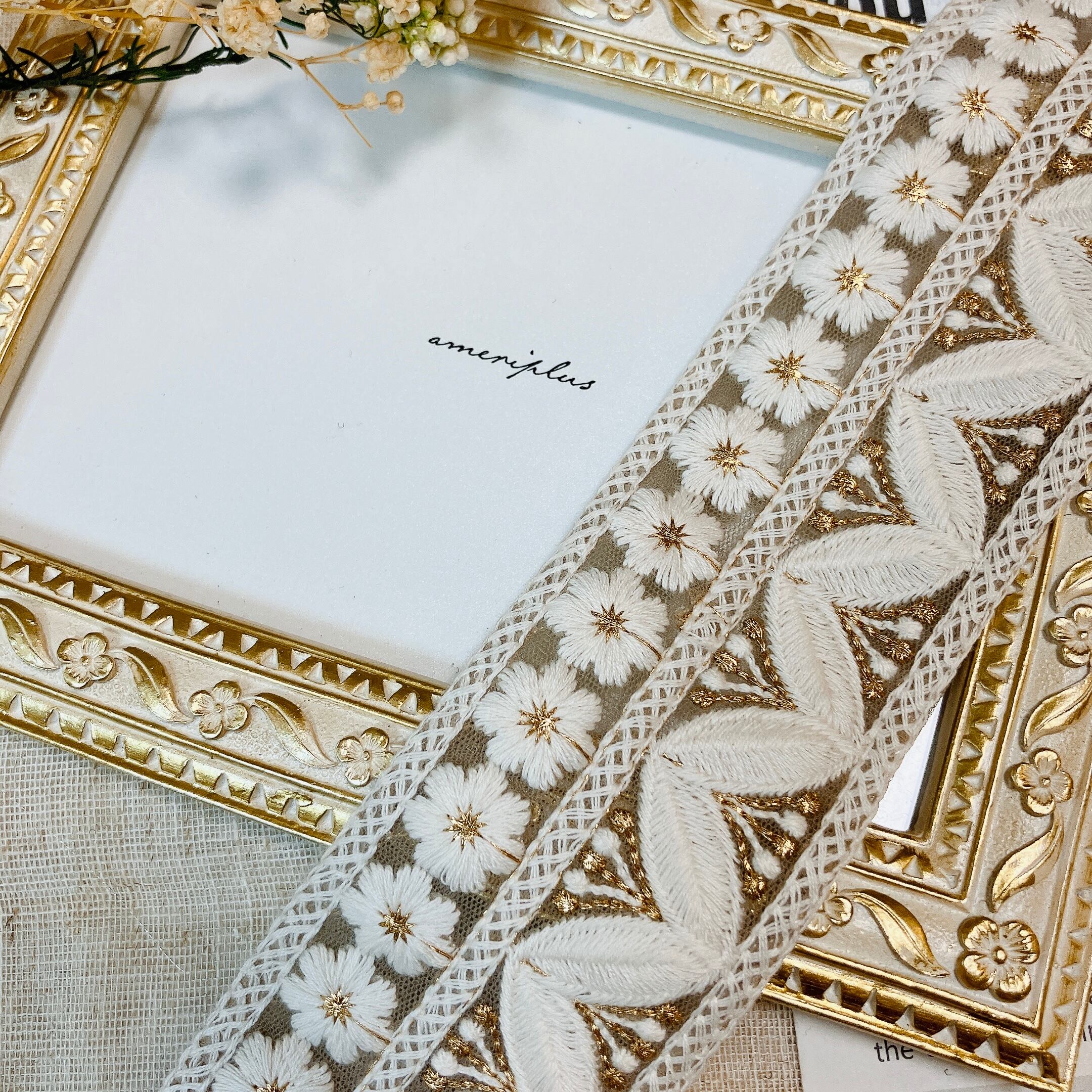デイジーレース [モーヴグレージュ]インド刺繍リボン A_0015