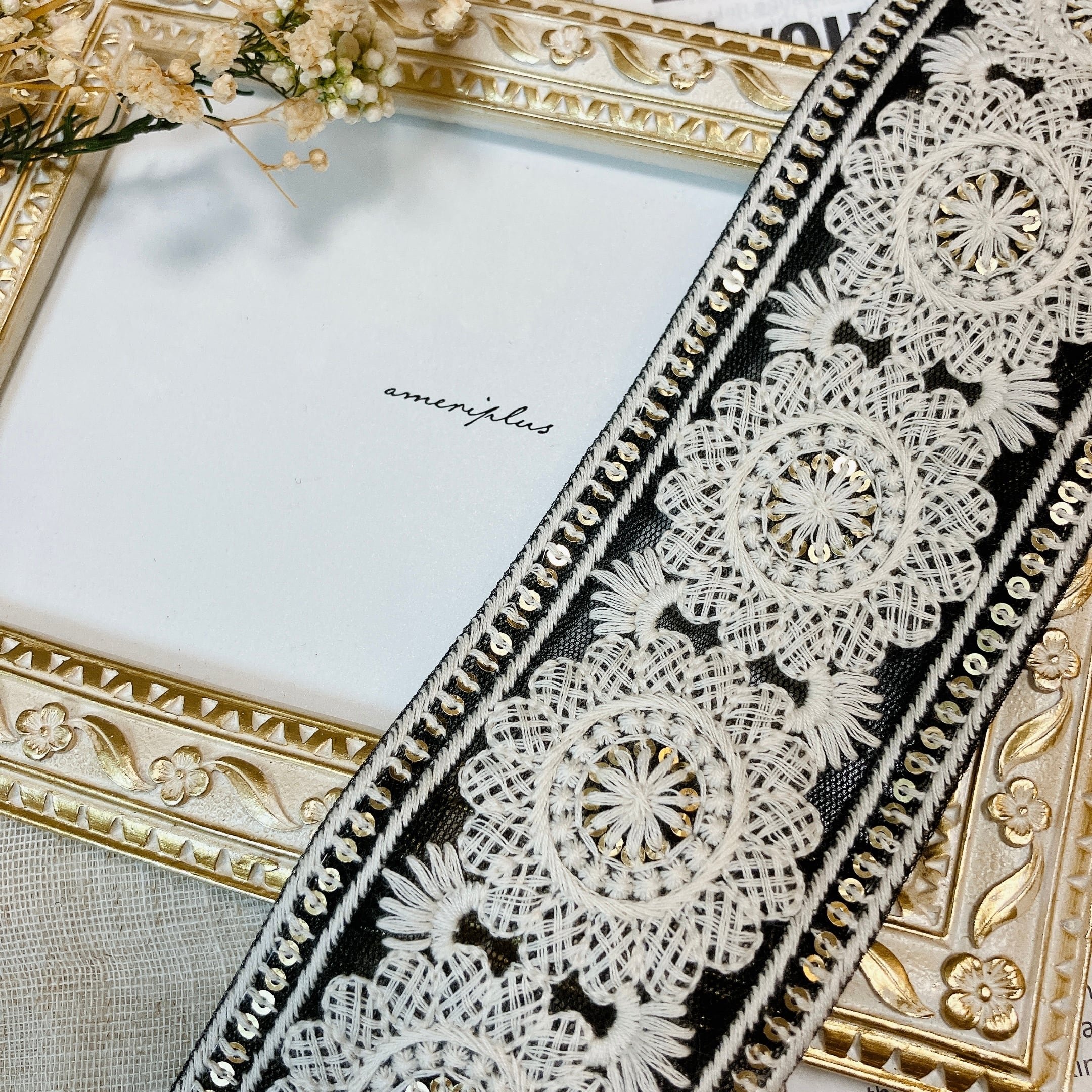 インドから直輸入した、カラフルで繊細なミシン刺繍が魅力のリボンです。