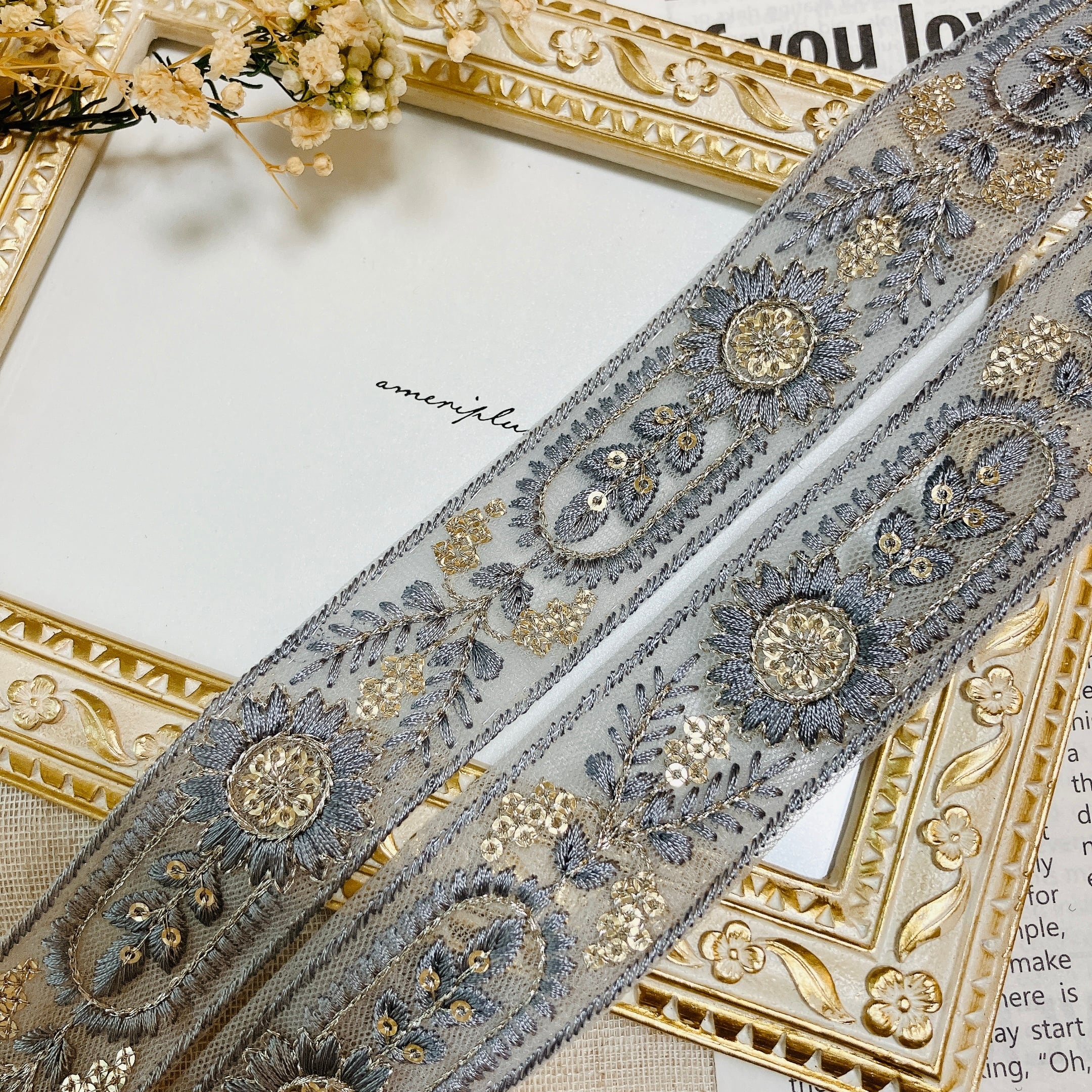 サンフラワー・エレガンス [ペールブルー]インド刺繍リボン A_0019