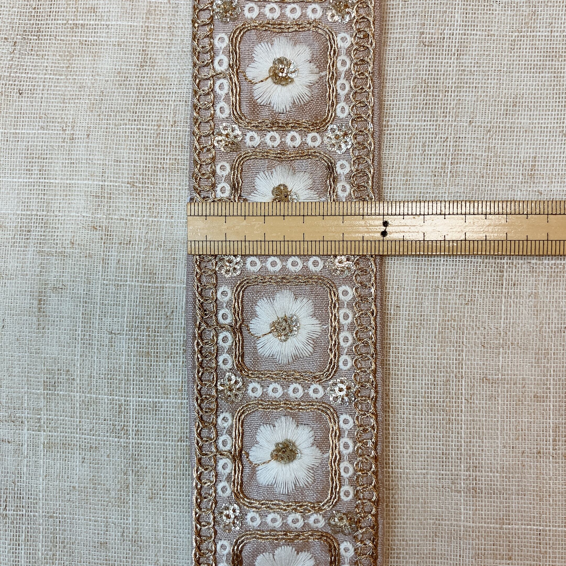 フローラル・ブロック [ピンクモカ]インド刺繍リボン A_0033