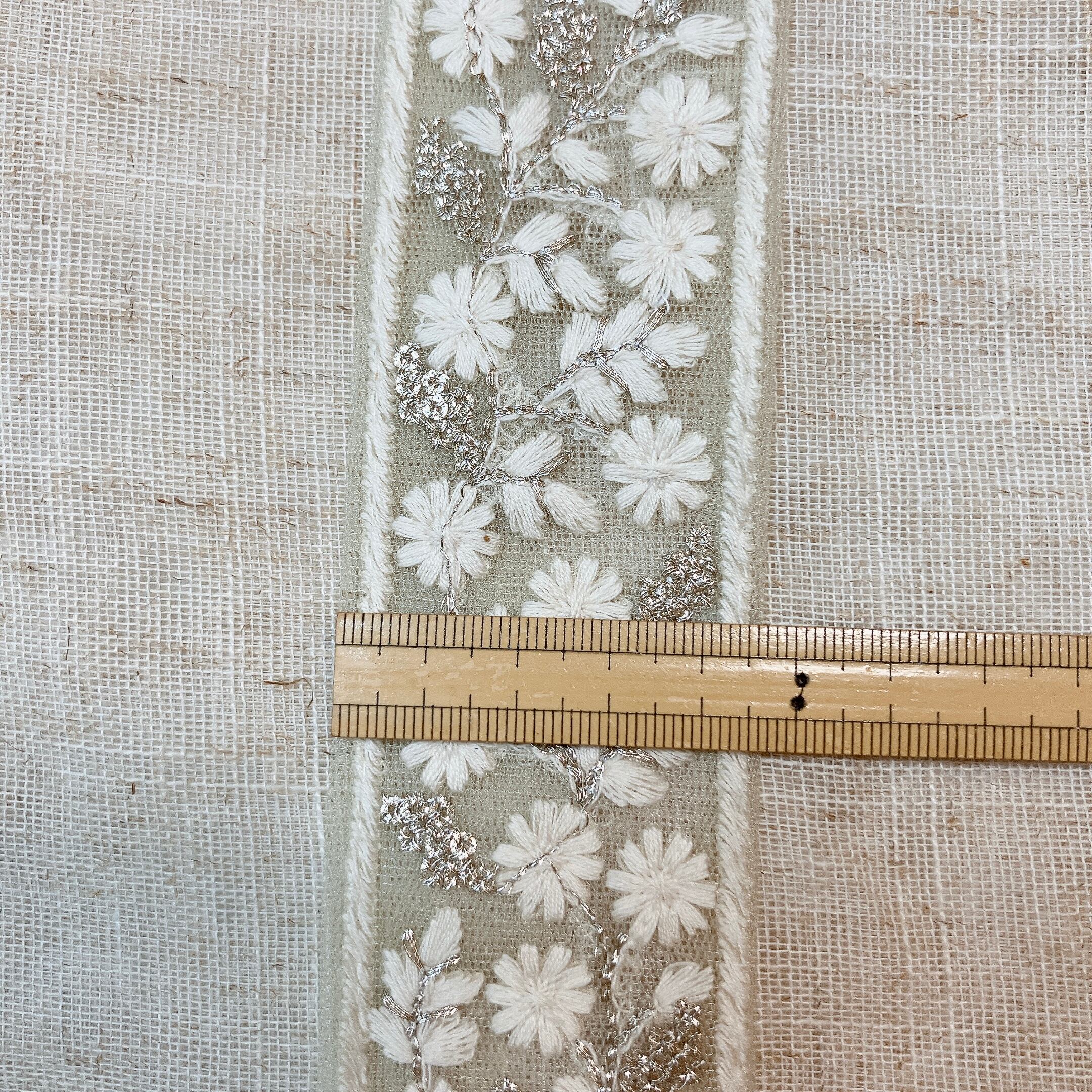エトワールフラワー [ミントホワイト]インド刺繍リボン A_0082