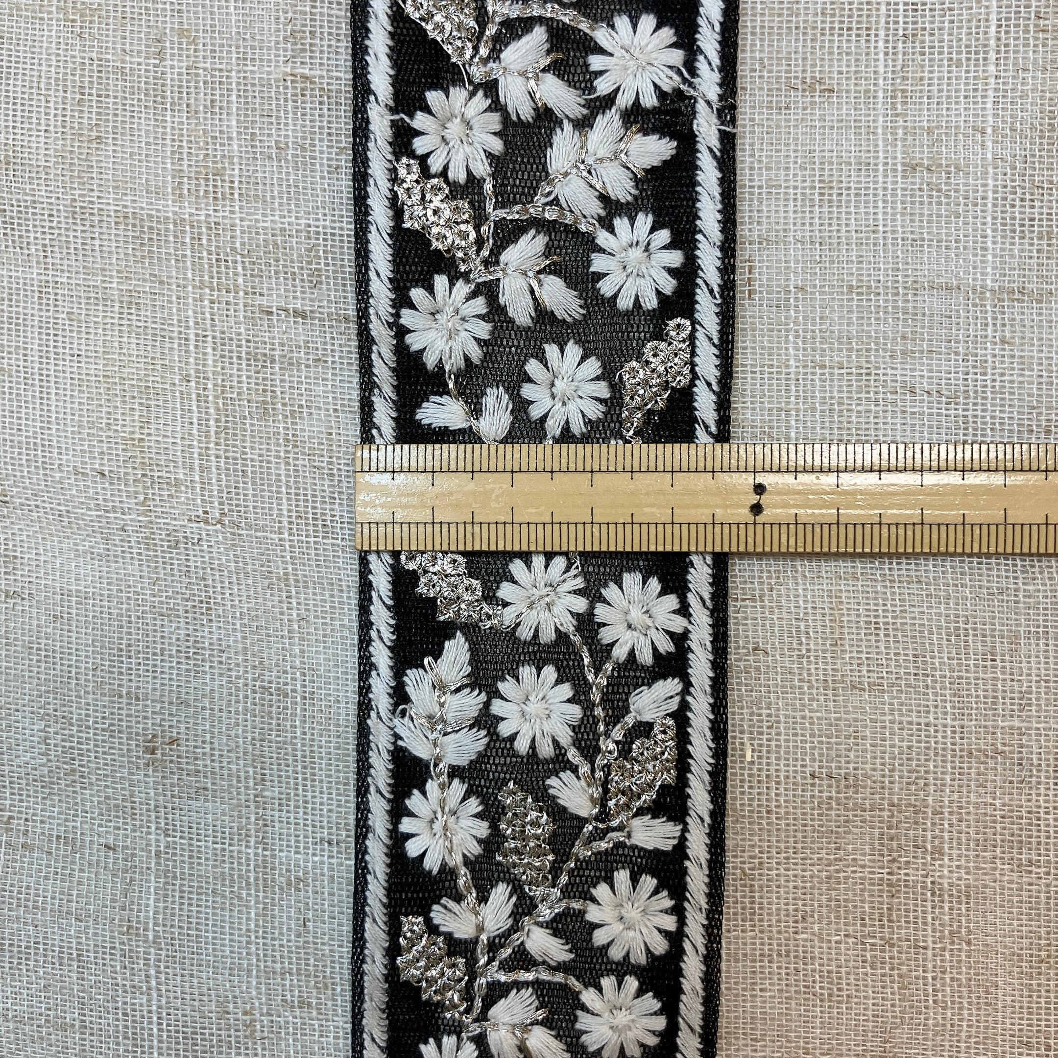 【再入荷】エトワールフラワー [クラシックブラック]インド刺繍リボン A_0084