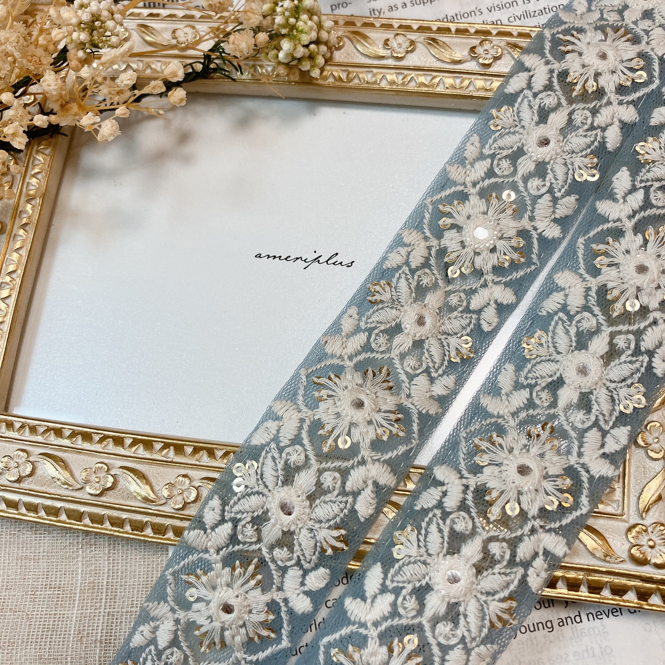 インドから直輸入した、カラフルで繊細なミシン刺繍が魅力のリボンです。