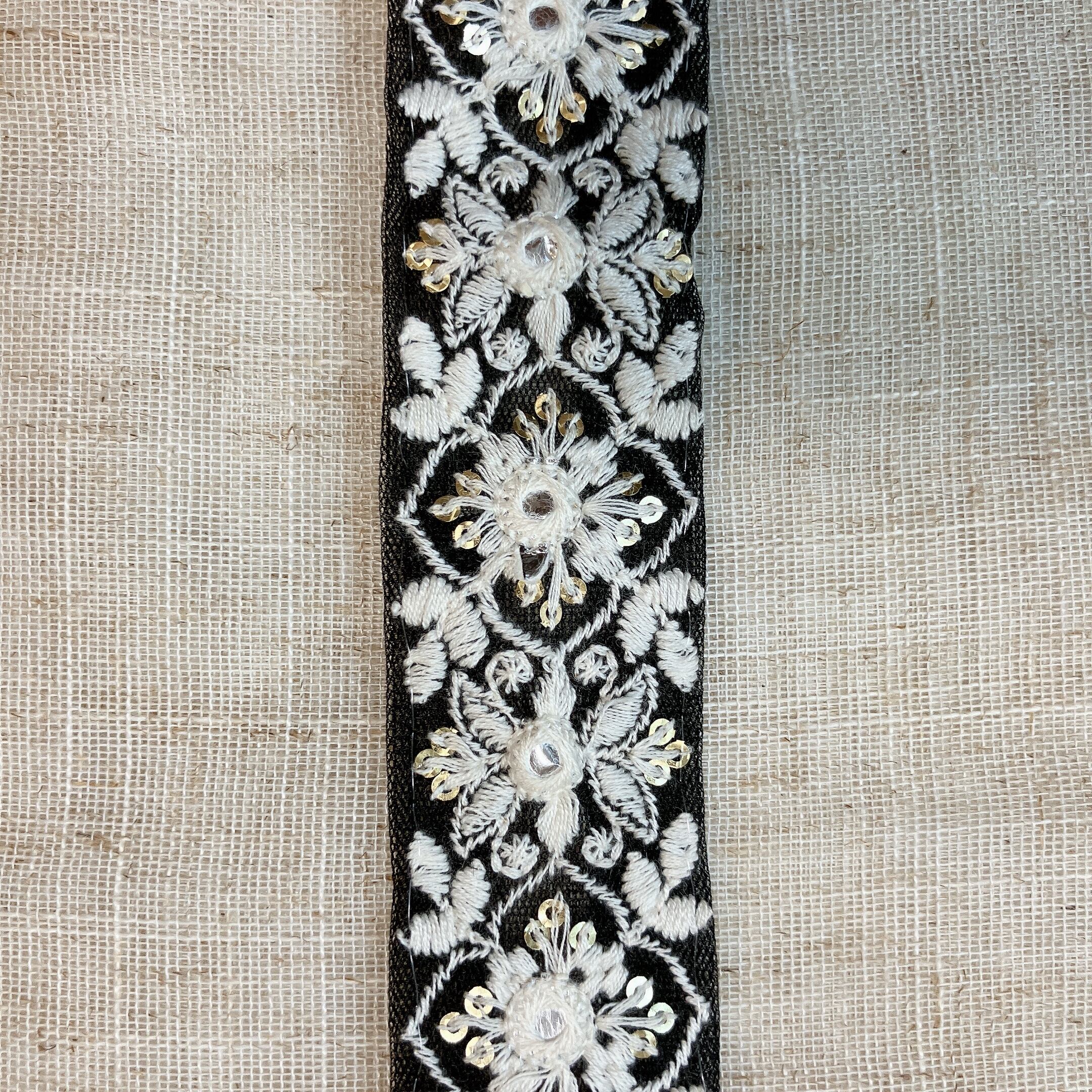 【再入荷】リュクス・フローラル [ナイトブラック]インド刺繍リボン A_0088
