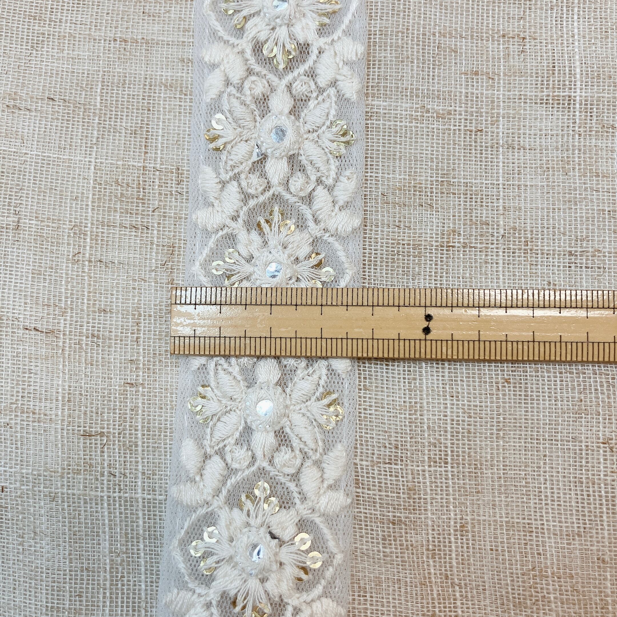 【再入荷】リュクス・フローラル [ミルキーホワイト]インド刺繍リボン A_0091