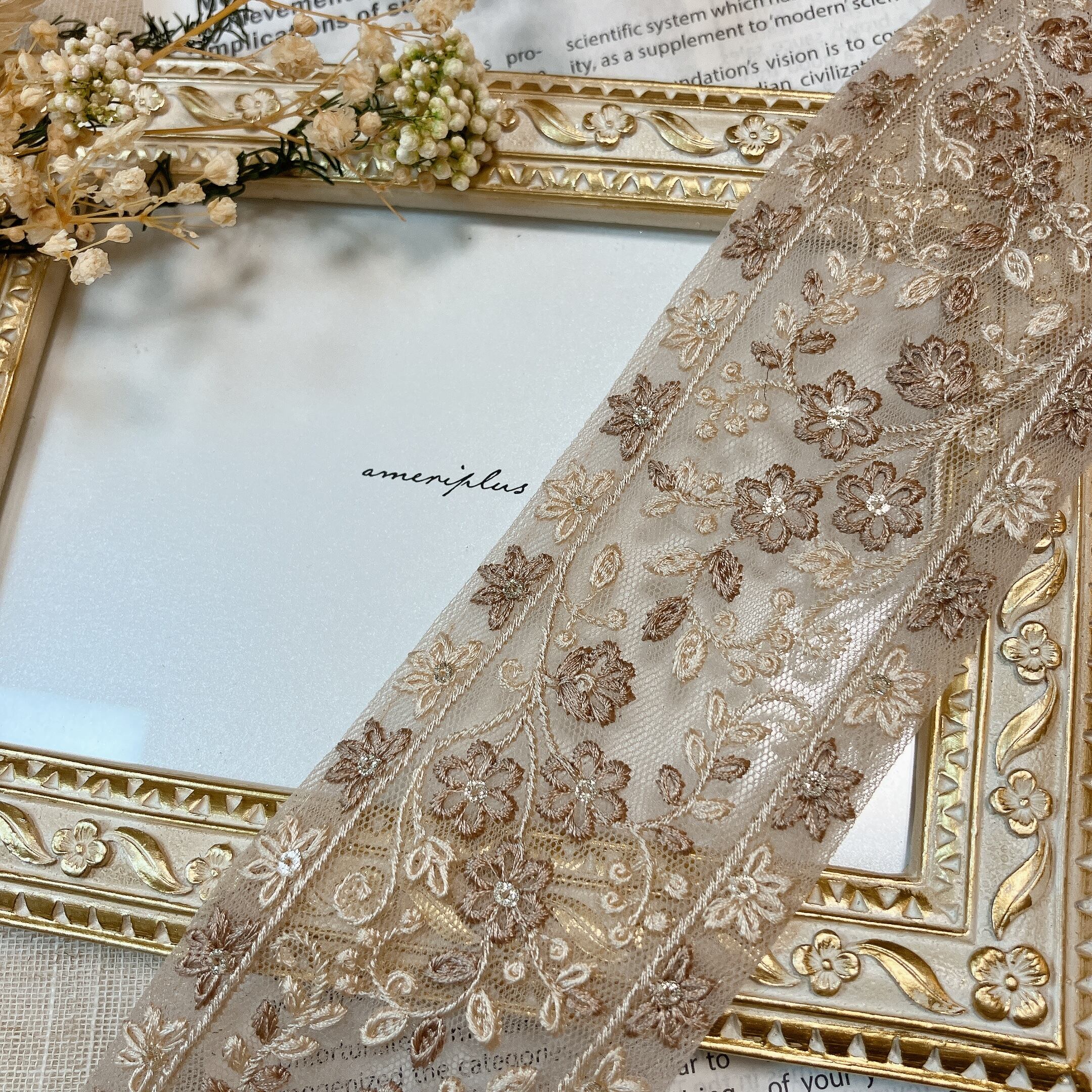 フローラ・レーヴ [モカベージュ]インド刺繍リボン A_0093