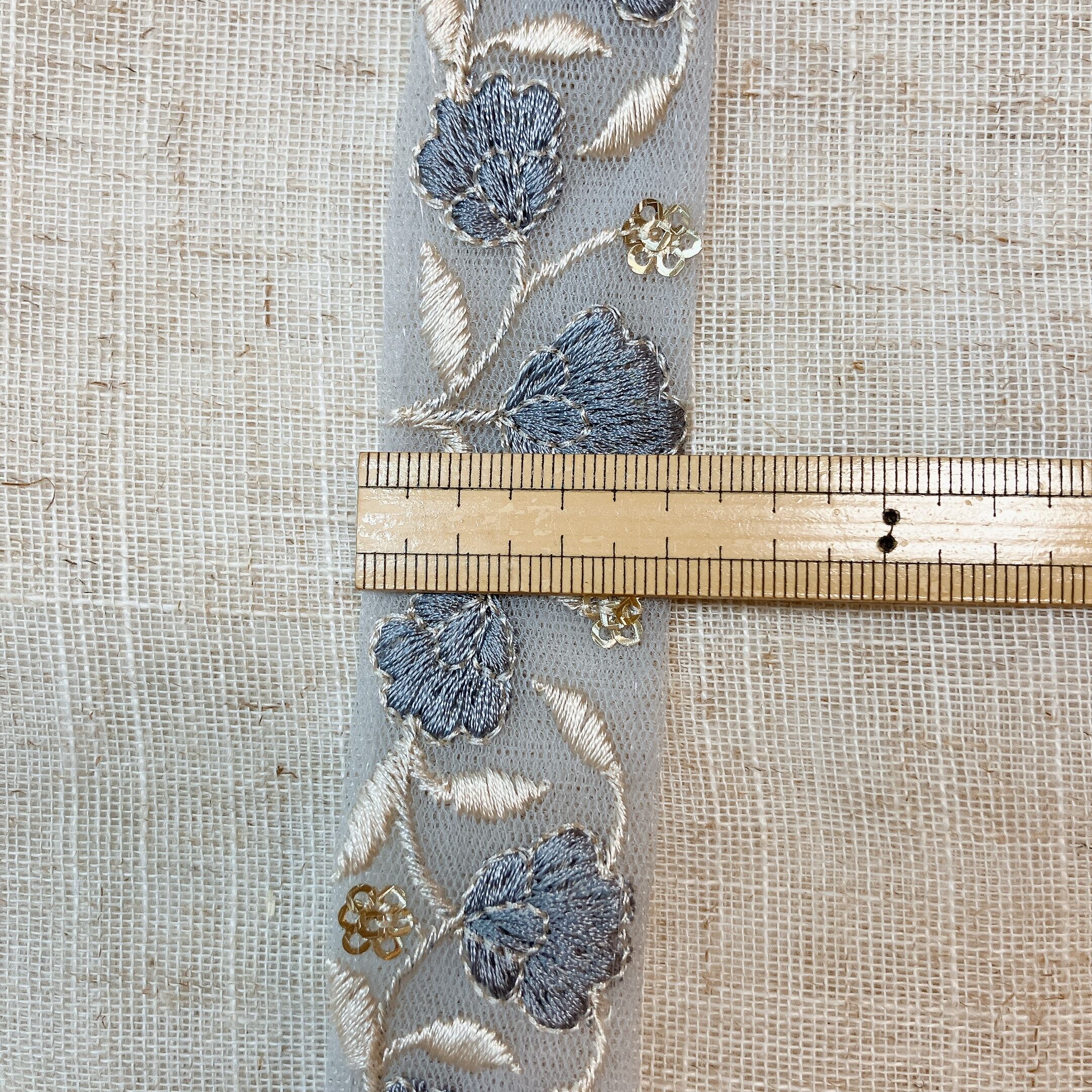 エンブロイダリーブーケ(S) [スモーキーブルー]インド刺繍リボン A_0068