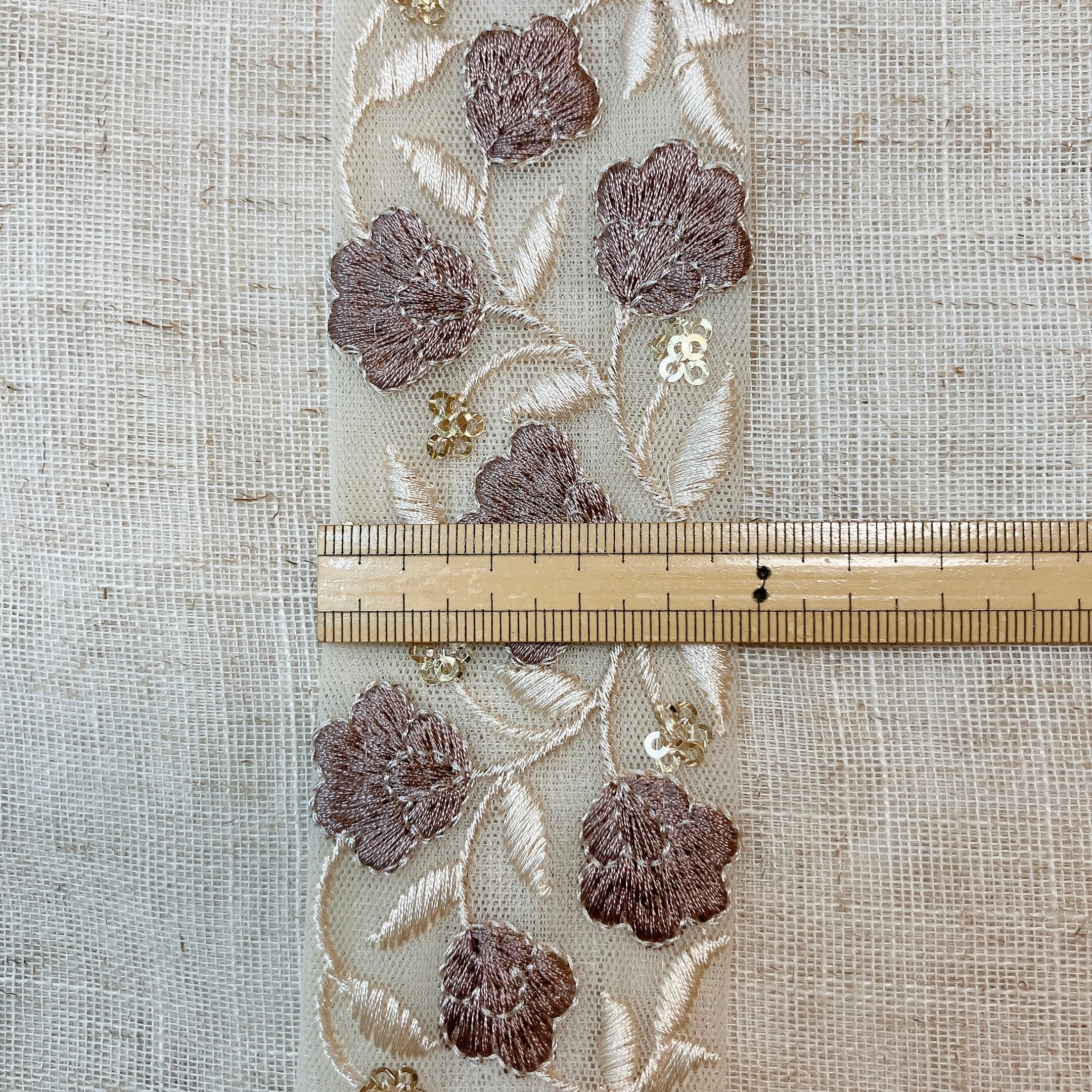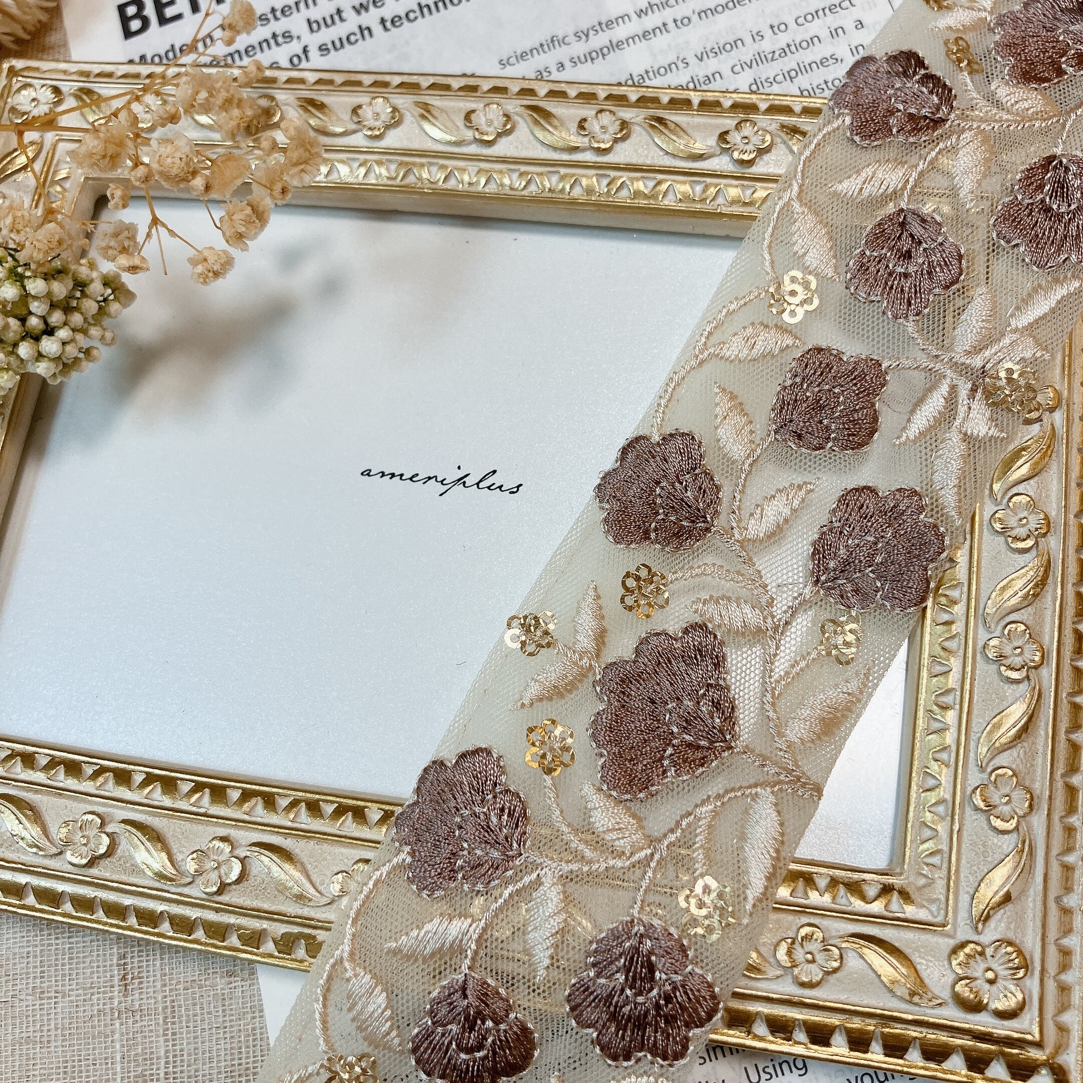 エンブロイダリーブーケ(M) [ラベンダーグレージュ]インド刺繍リボン A_0071