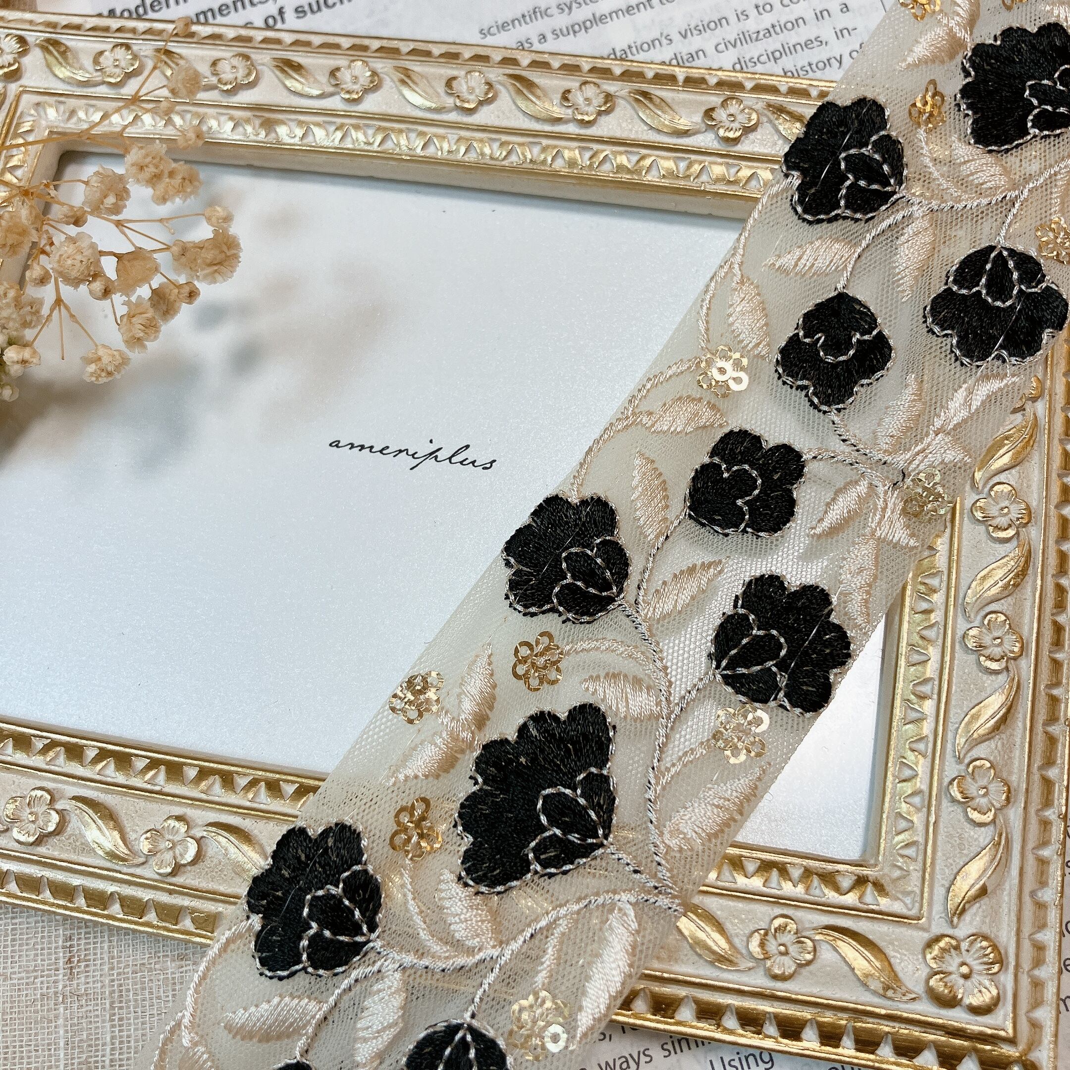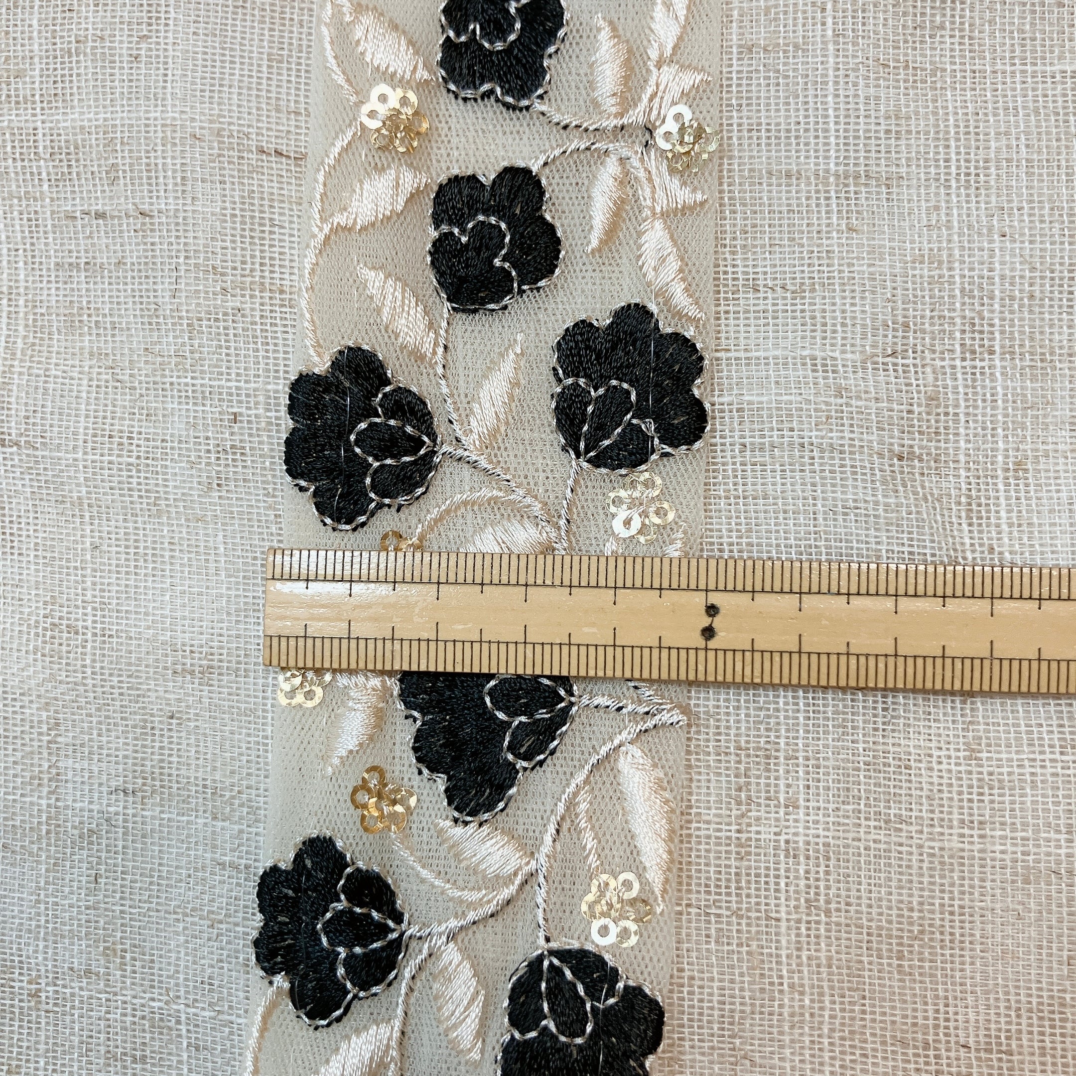 エンブロイダリーブーケ(M) [アイボリー×ブラック]インド刺繍リボン A_0076