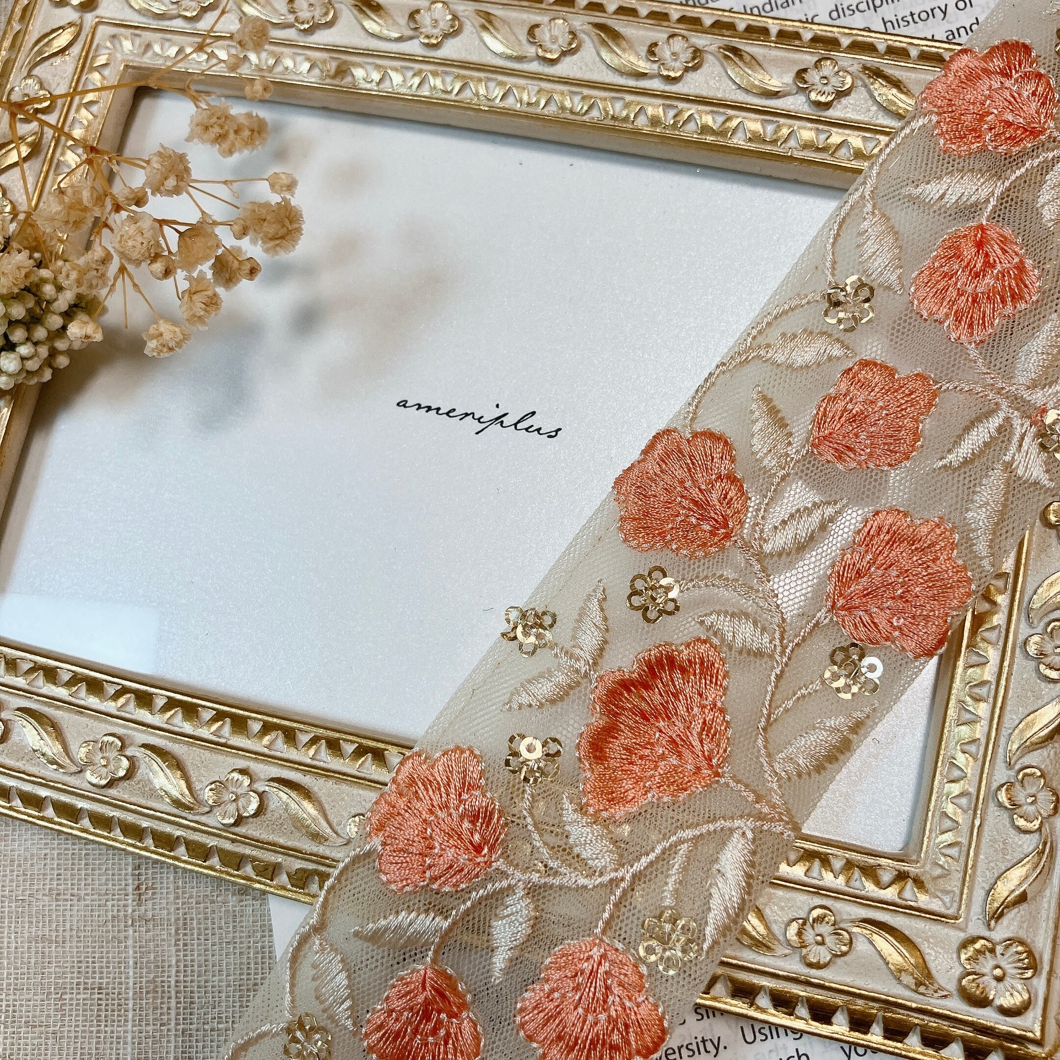 インドから直輸入した、カラフルで繊細なミシン刺繍が魅力のリボンです。