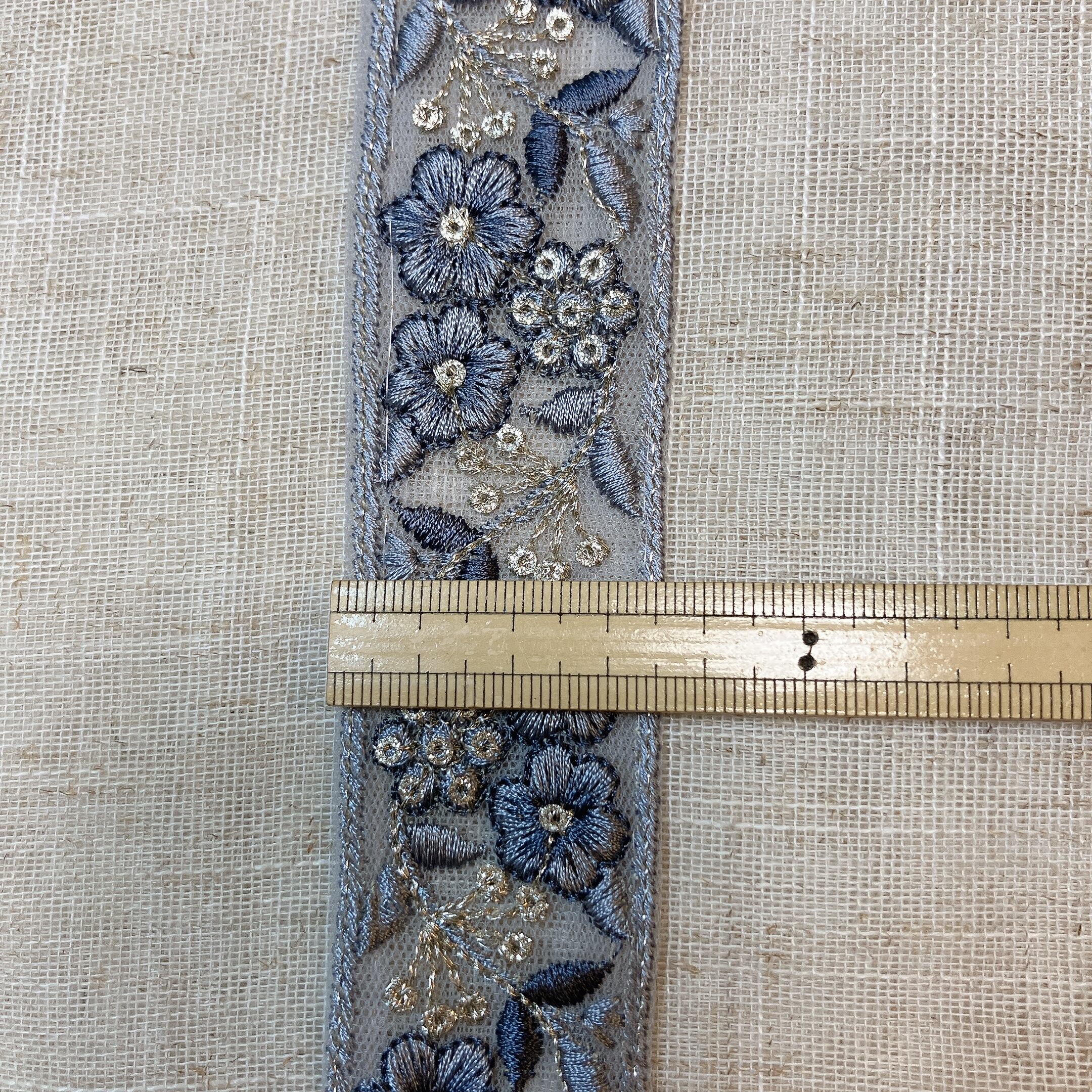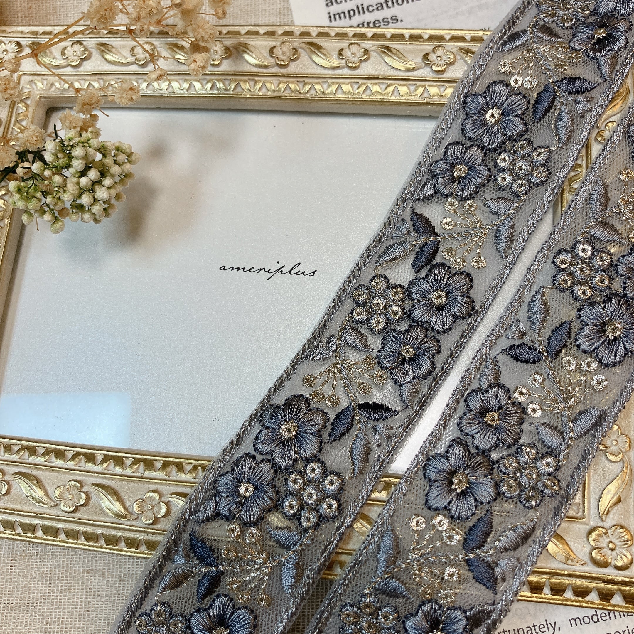 プティフルール [スモーキーブルー]インド刺繍リボン A_0127
