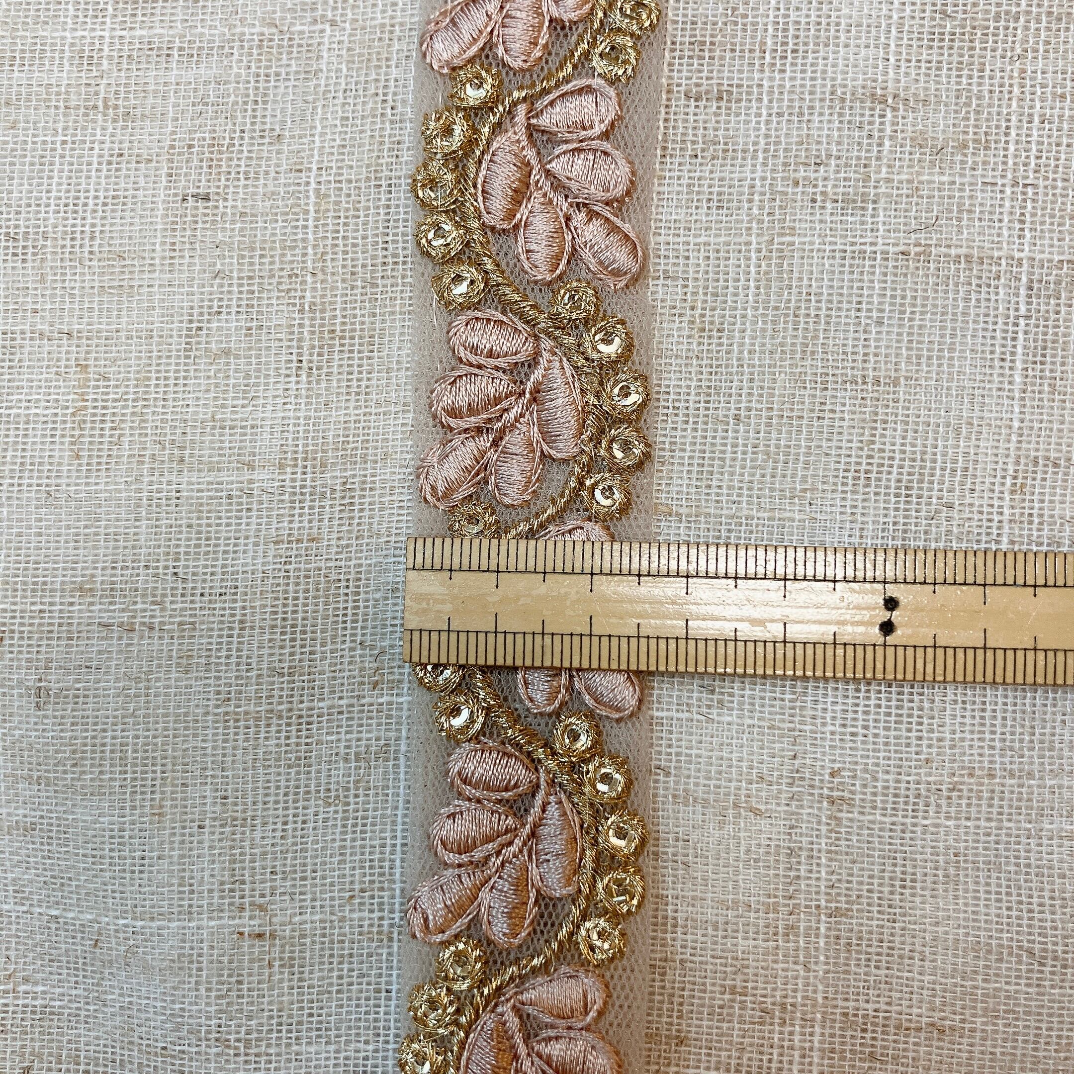 リュクスリーフ [ ペールピンク]インド刺繍リボン A_0131