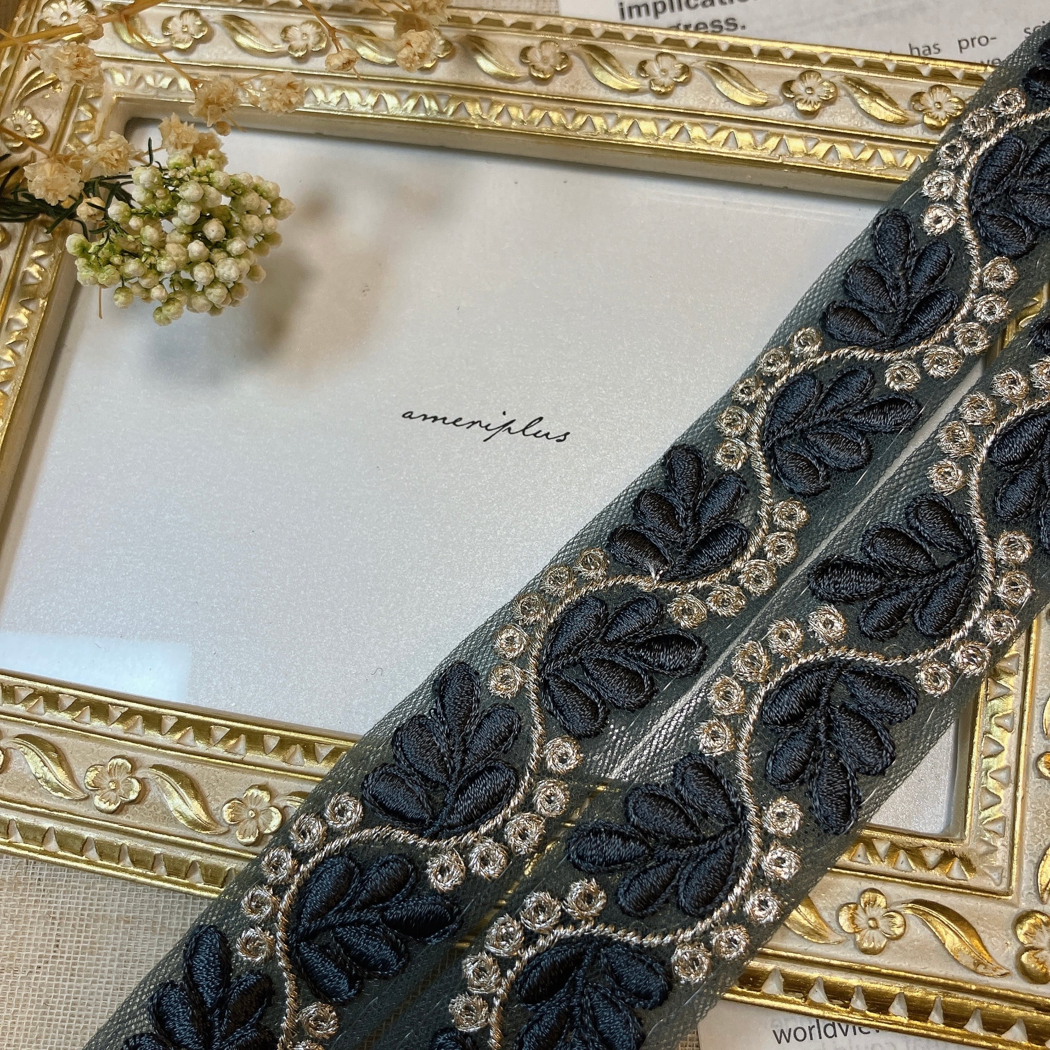リュクスリーフ [ディープグリーン]インド刺繍リボン A_0133