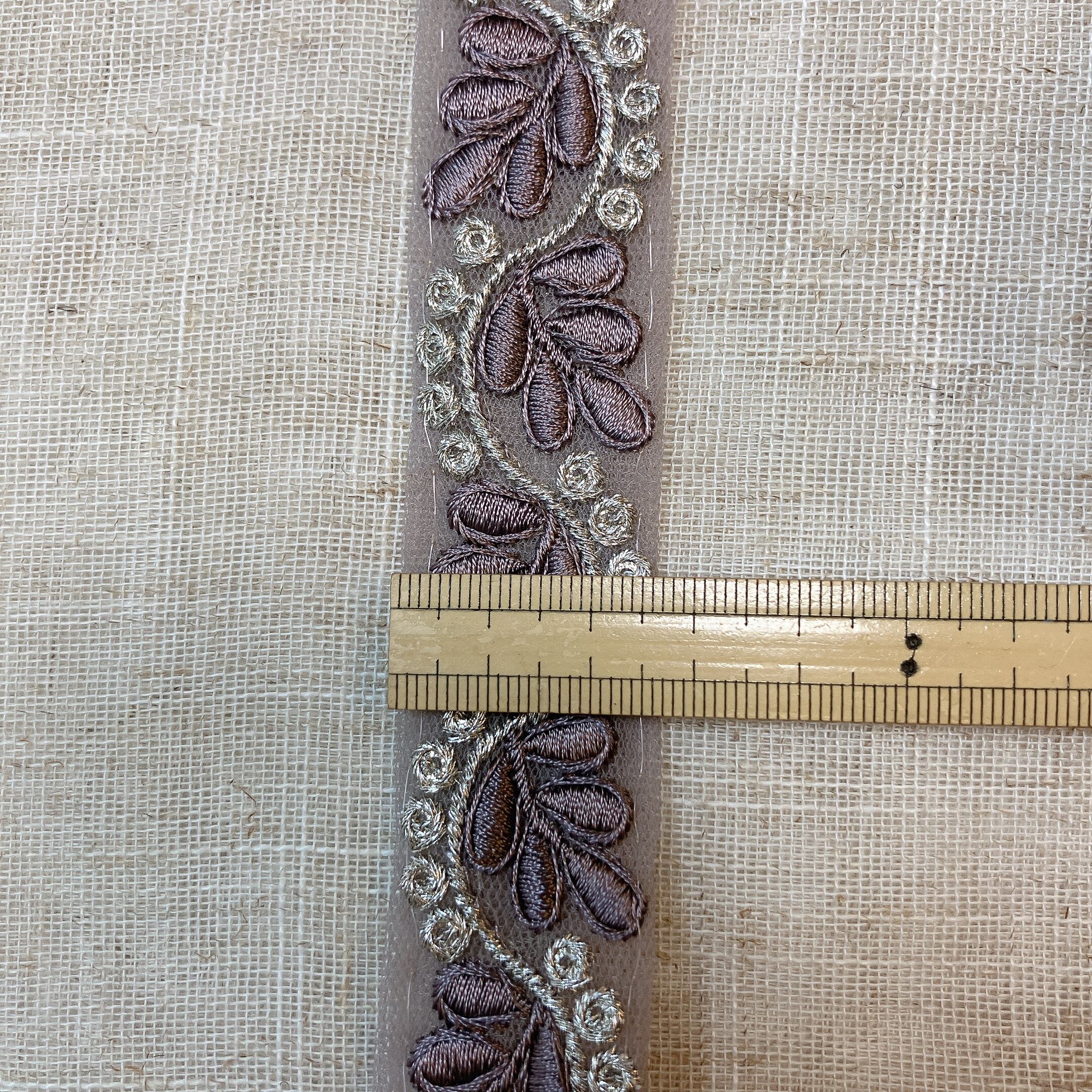 リュクスリーフ [ モーヴグレー]インド刺繍リボン A_0137