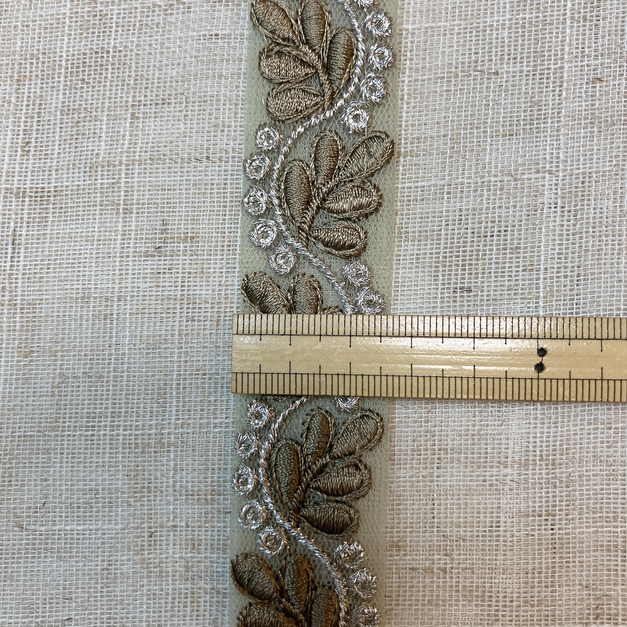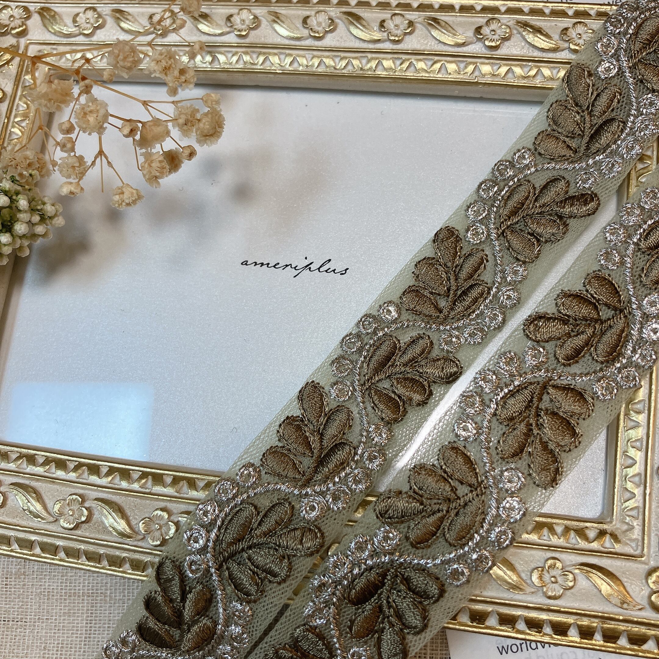 リュクスリーフ [オリーブカーキ]インド刺繍リボン A_0141
