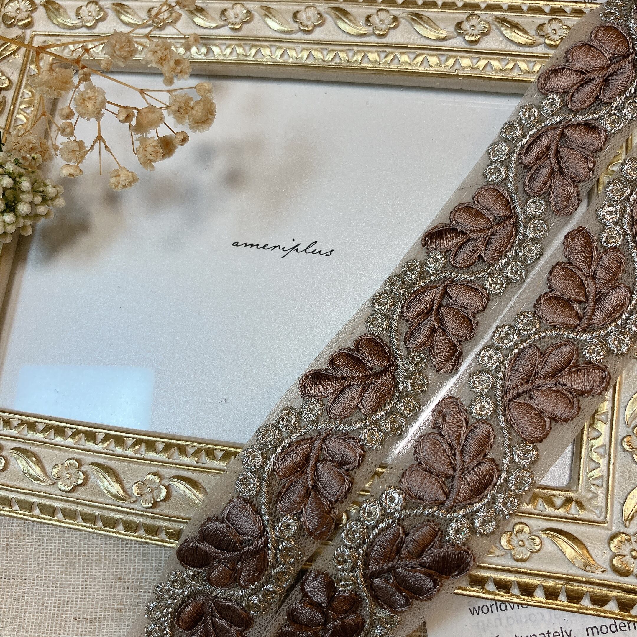 リュクスリーフ [モカブラウン]インド刺繍リボン A_0142