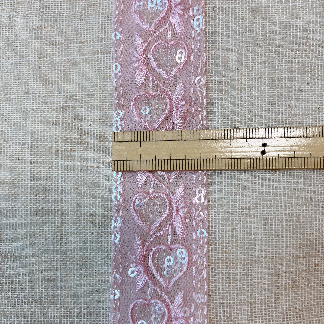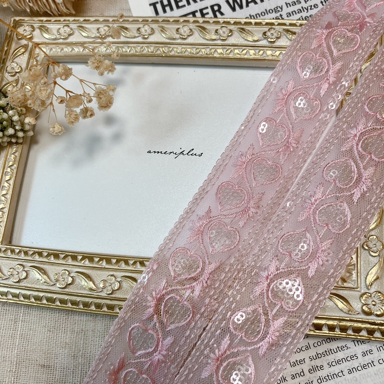 ハートシェルリボン [ペールピンク ]インド刺繍リボン A_0176