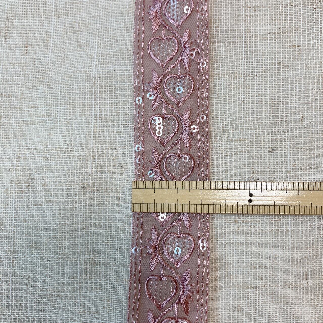 ハートシェルリボン [アンティークローズ ]インド刺繍リボン A_0179