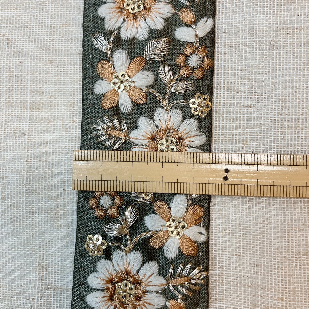 ヴィンテージブロッサムリボン [オリーブグレー]インド刺繍リボン A_0182