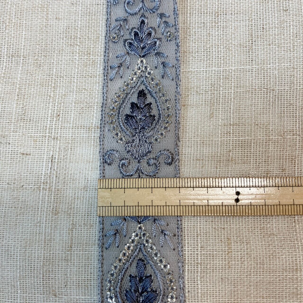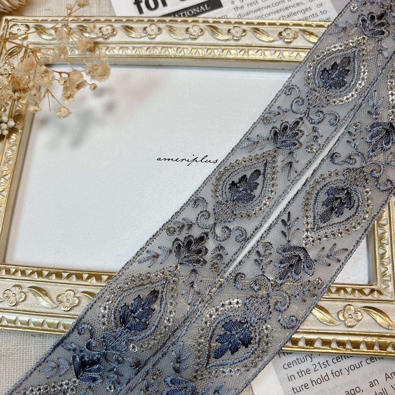 パレスジュエルリボン [スモーキーブルーグレー]インド刺繍リボン A_0187