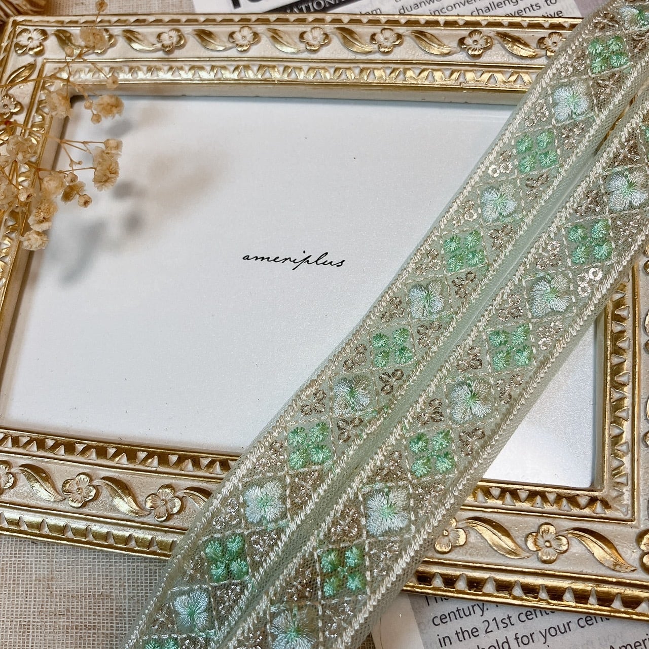 ダイヤフルール・リボン [ミントミルク ]インド刺繍リボン A_0202