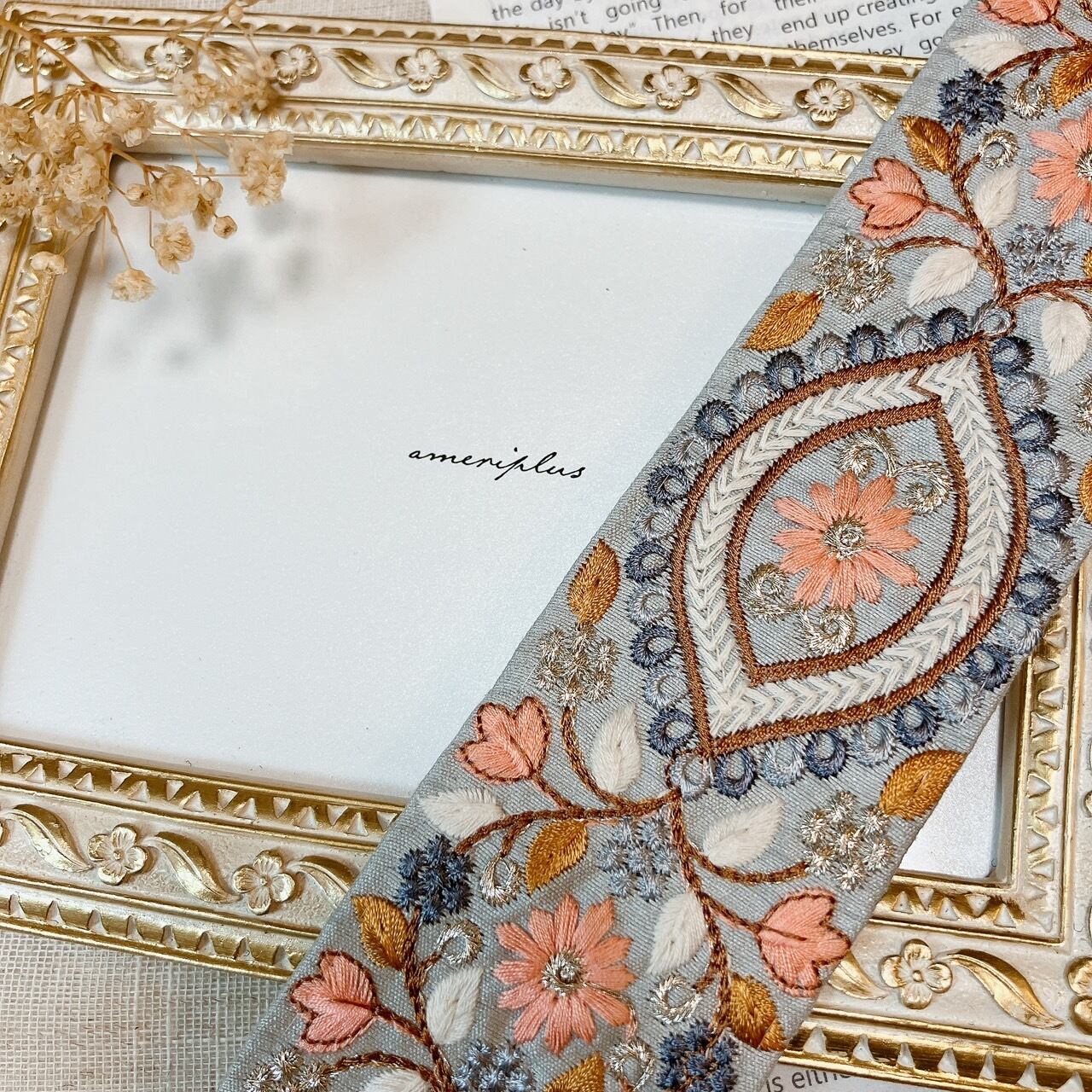 パルファンリボン [ブルーグレー]インド刺繍リボン A_0210