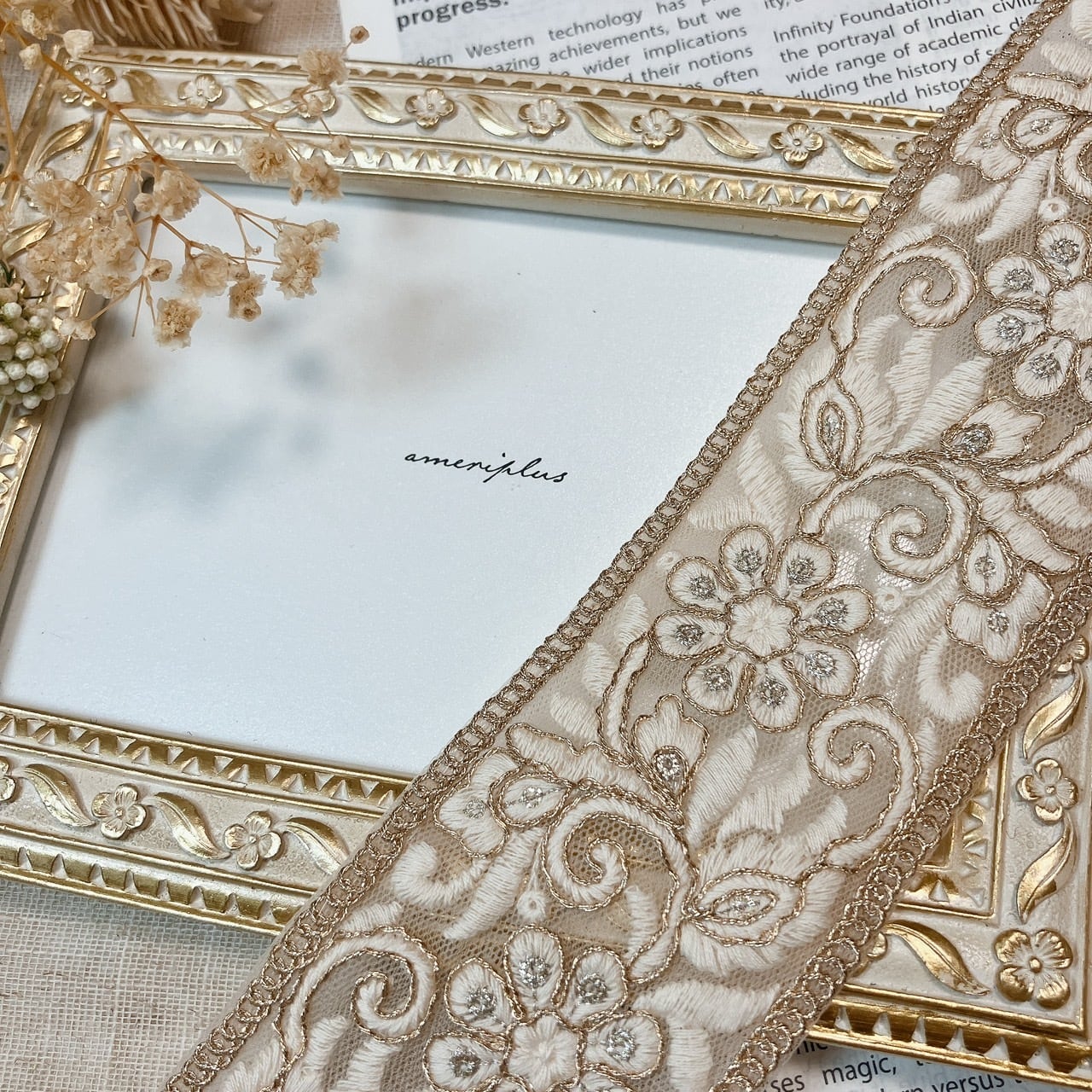 ロココフローラルリボン [シャンパンベージュ]インド刺繍リボン A_0258