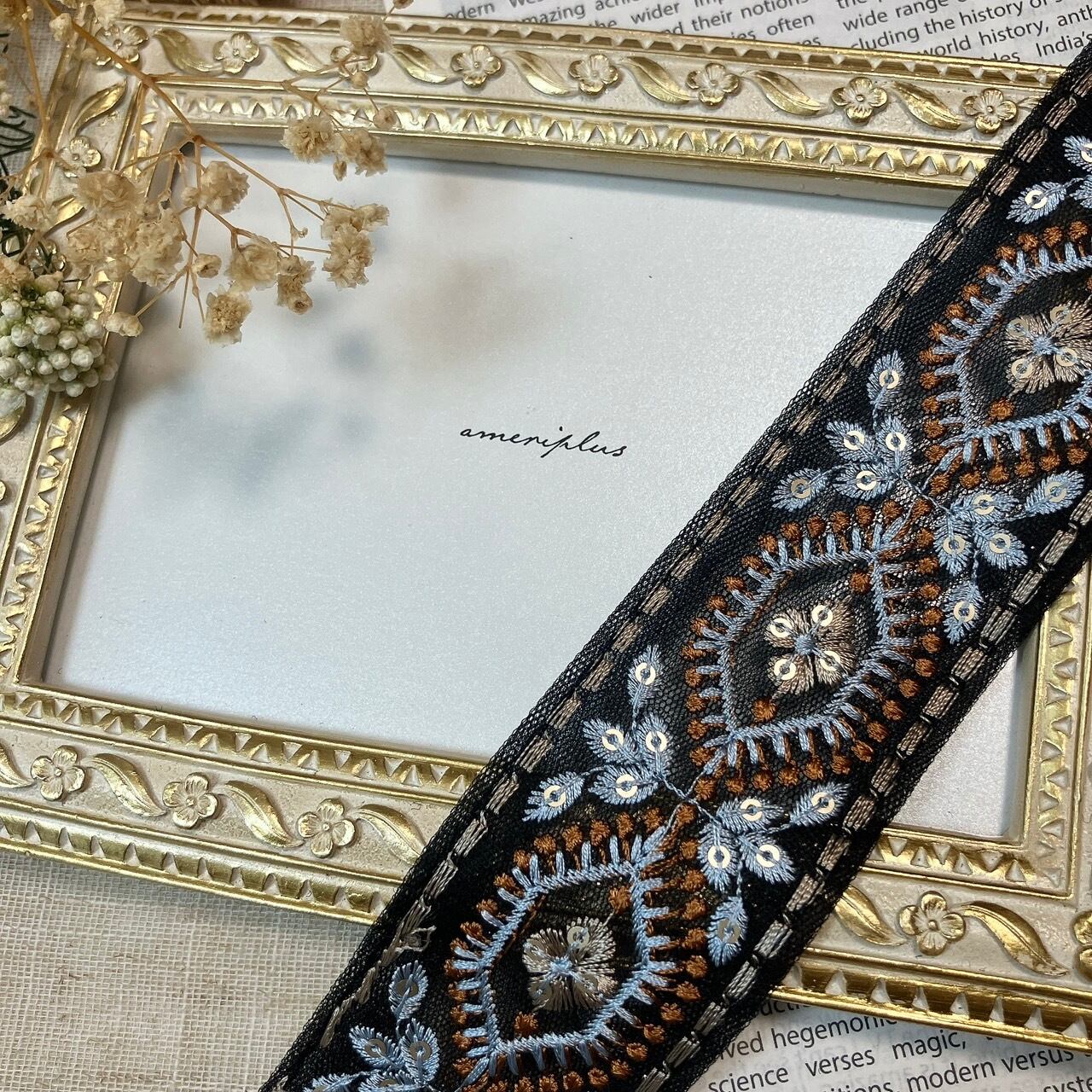 アラベスクリボン [ノクターンブルー]インド刺繍リボン A_0271