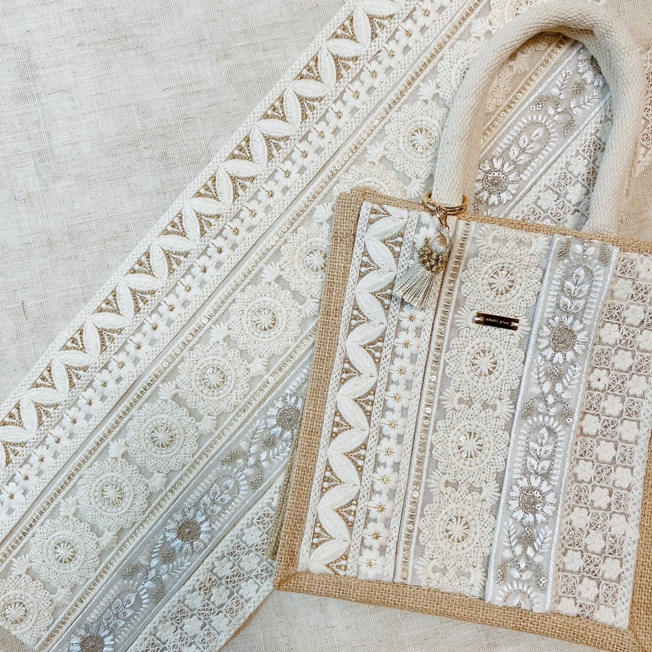 リール動画でご紹介した「無印のA6ジュートバッグアレンジ」に使用した、人気のインド刺繍リボン4種をセットにしました。