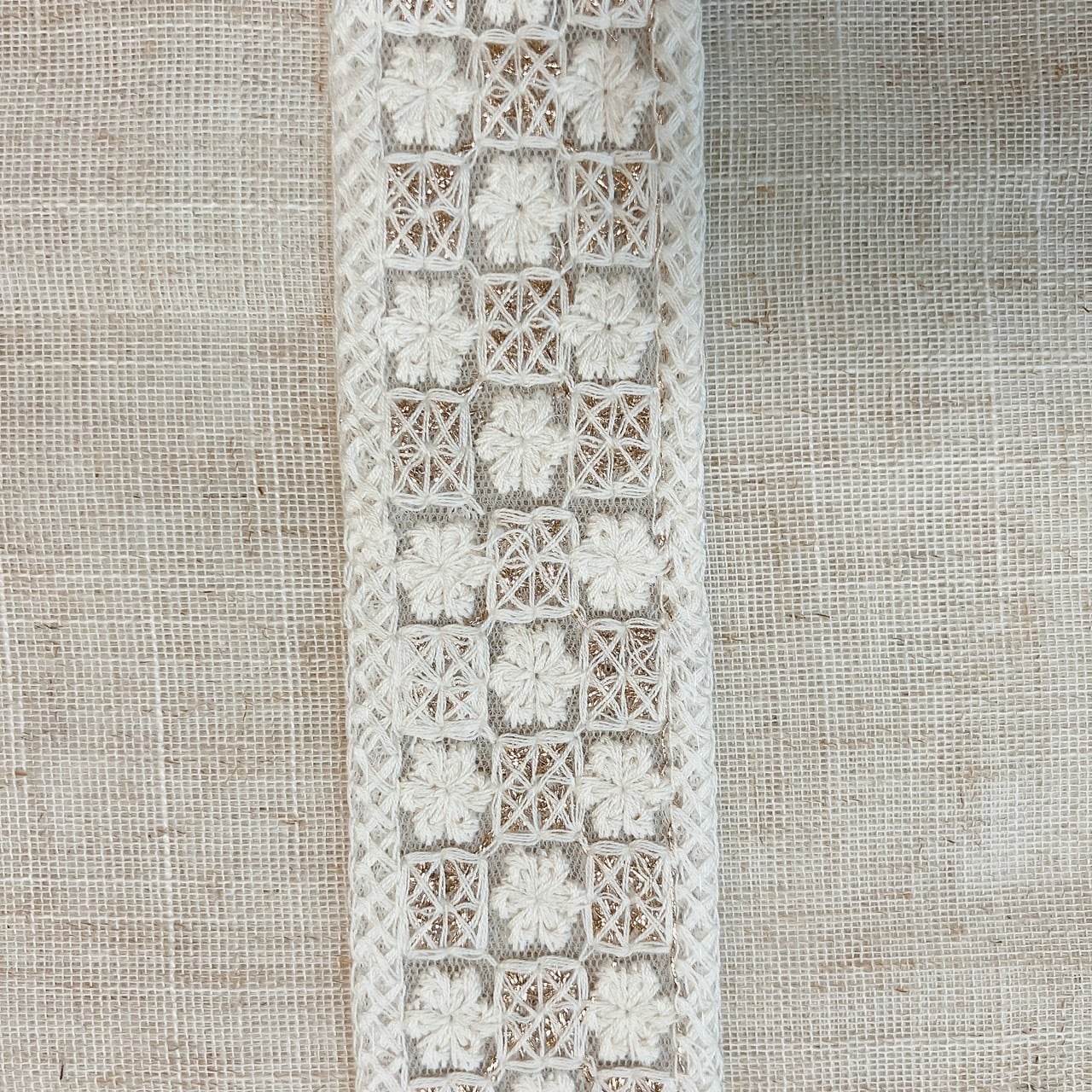 A6サイズのジュートバッグが2個作れる、インド刺繍リボン4種セット。