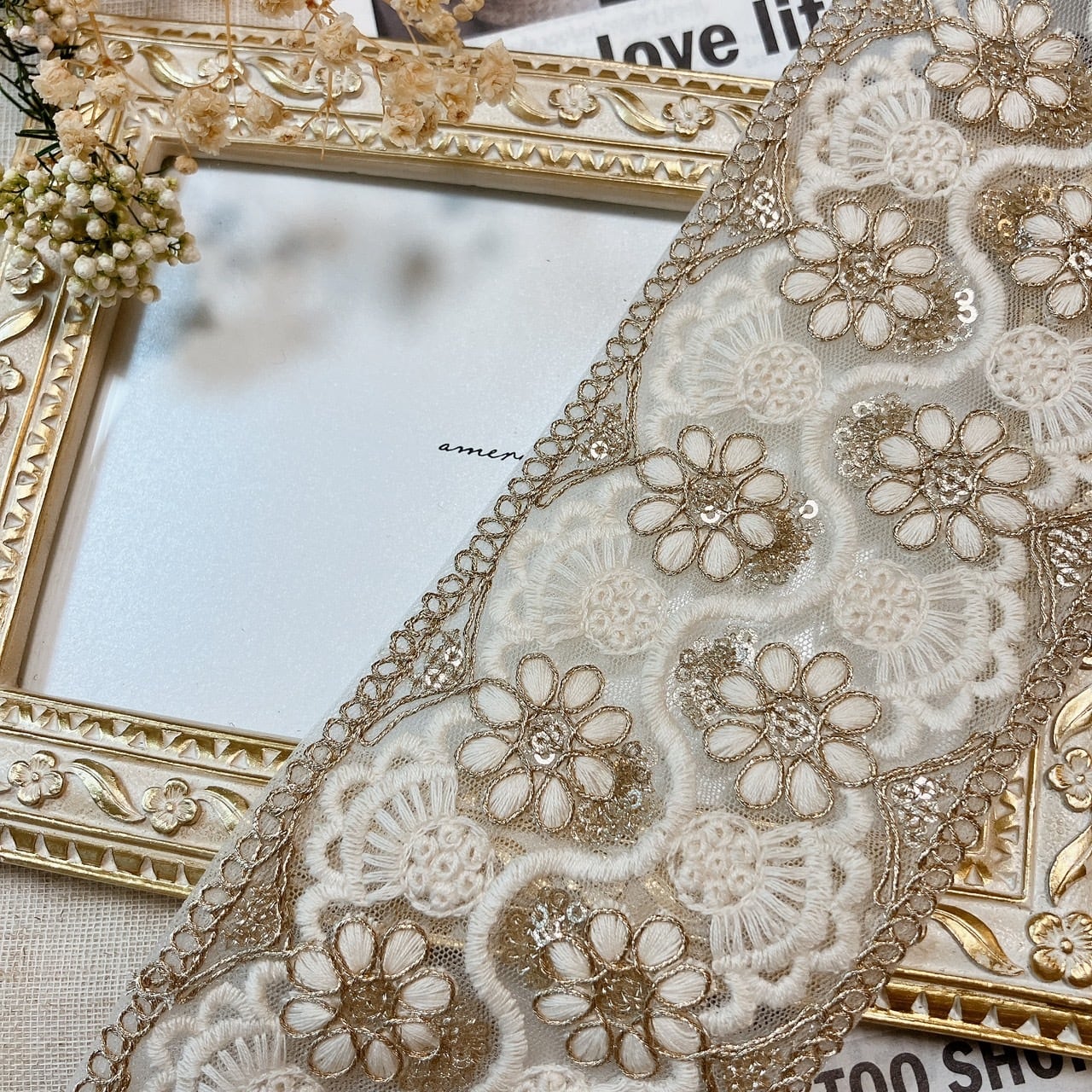 エクラフローラルリボン(L) [シャンパンアイボリー]インド刺繍リボン A_0280