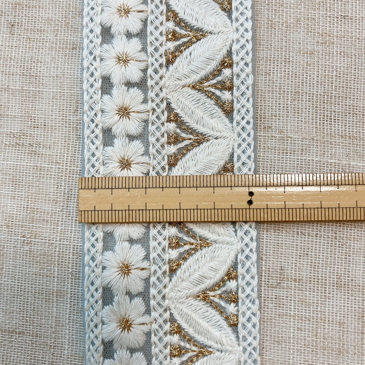 デイジーレース [フォグブルー]インド刺繍リボン A_0283