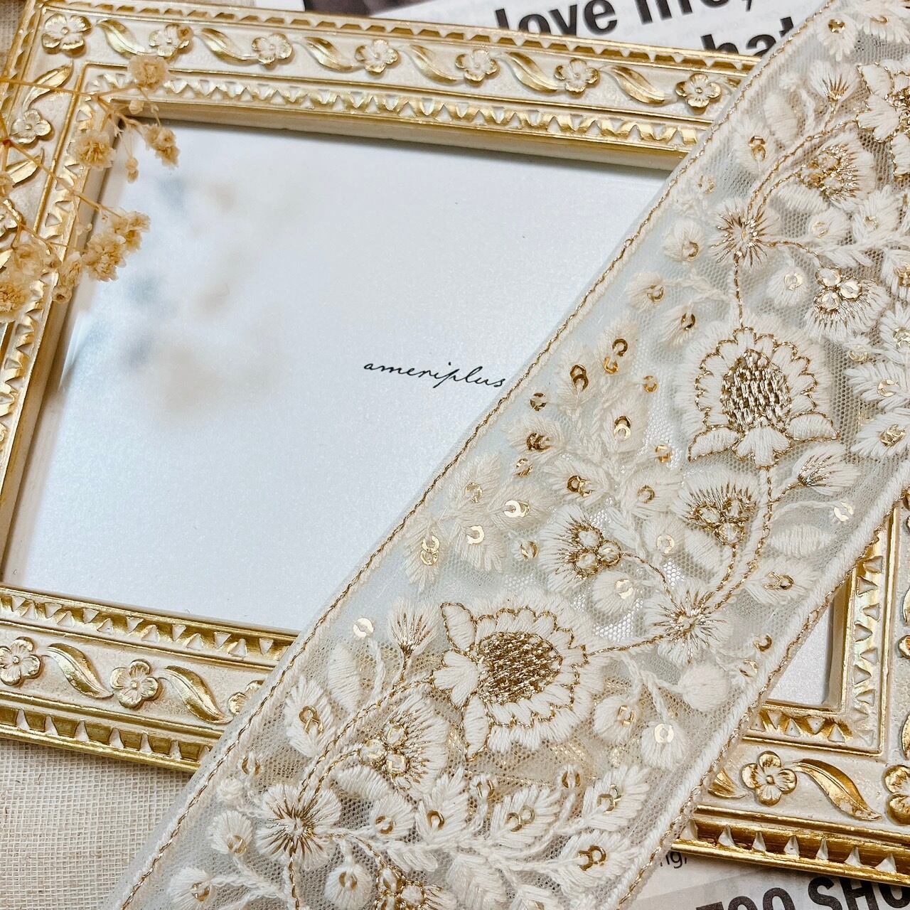 インドから直輸入した、カラフルで繊細なミシン刺繍が魅力のリボンです。
