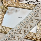 1ロール デイジーレース [フォグブルー]インド刺繍リボン A_0283-1R
