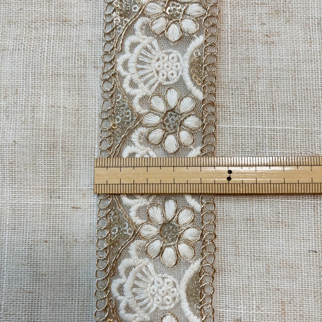 1ロール エクラフローラルリボン(M) [シャンパンアイボリー]インド刺繍リボン A_0278-1R