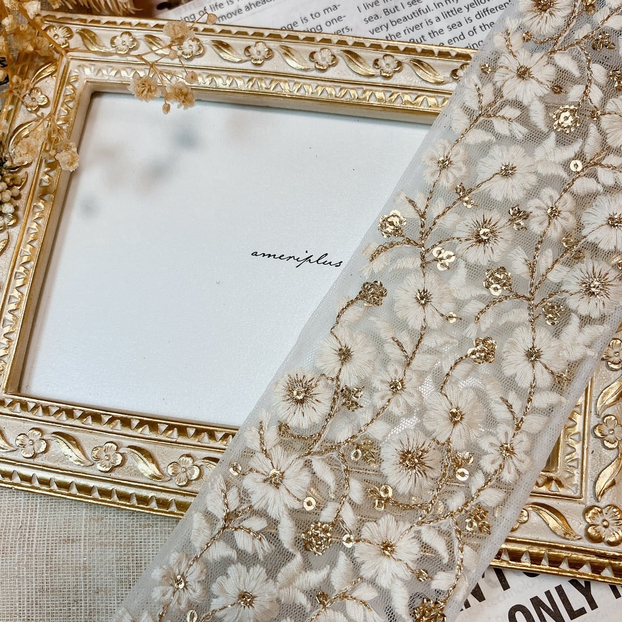 ルミエールフローラ [シャンパンゴールド]インド刺繍リボン A_0288