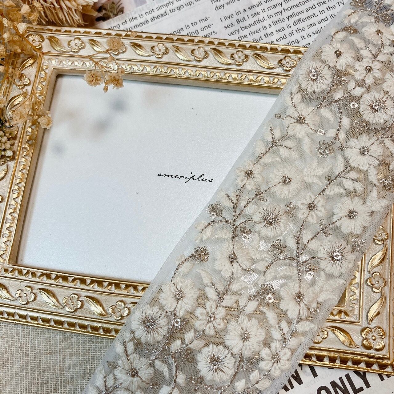 インドから直輸入した、カラフルで繊細なミシン刺繍が魅力のリボンです。