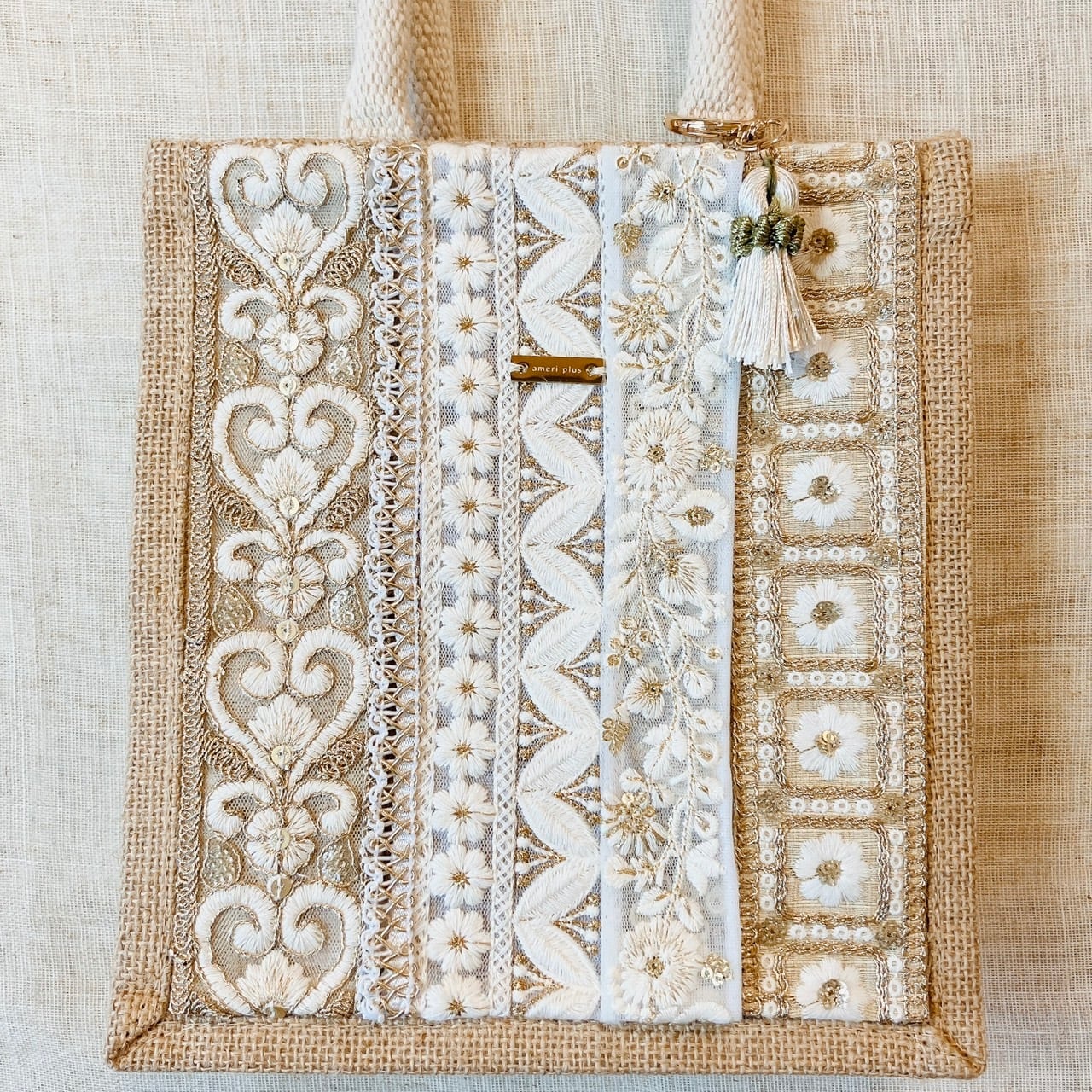 無印のA6サイズのジュートバッグアレンジが2個分作れる、インド刺繍リボンの5種セットです。
