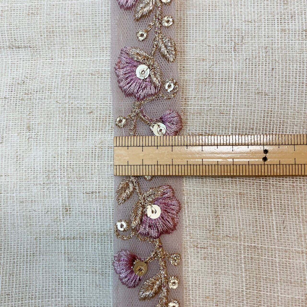 シャルロットレース [アメジストパープル]インド刺繍リボン A_0304