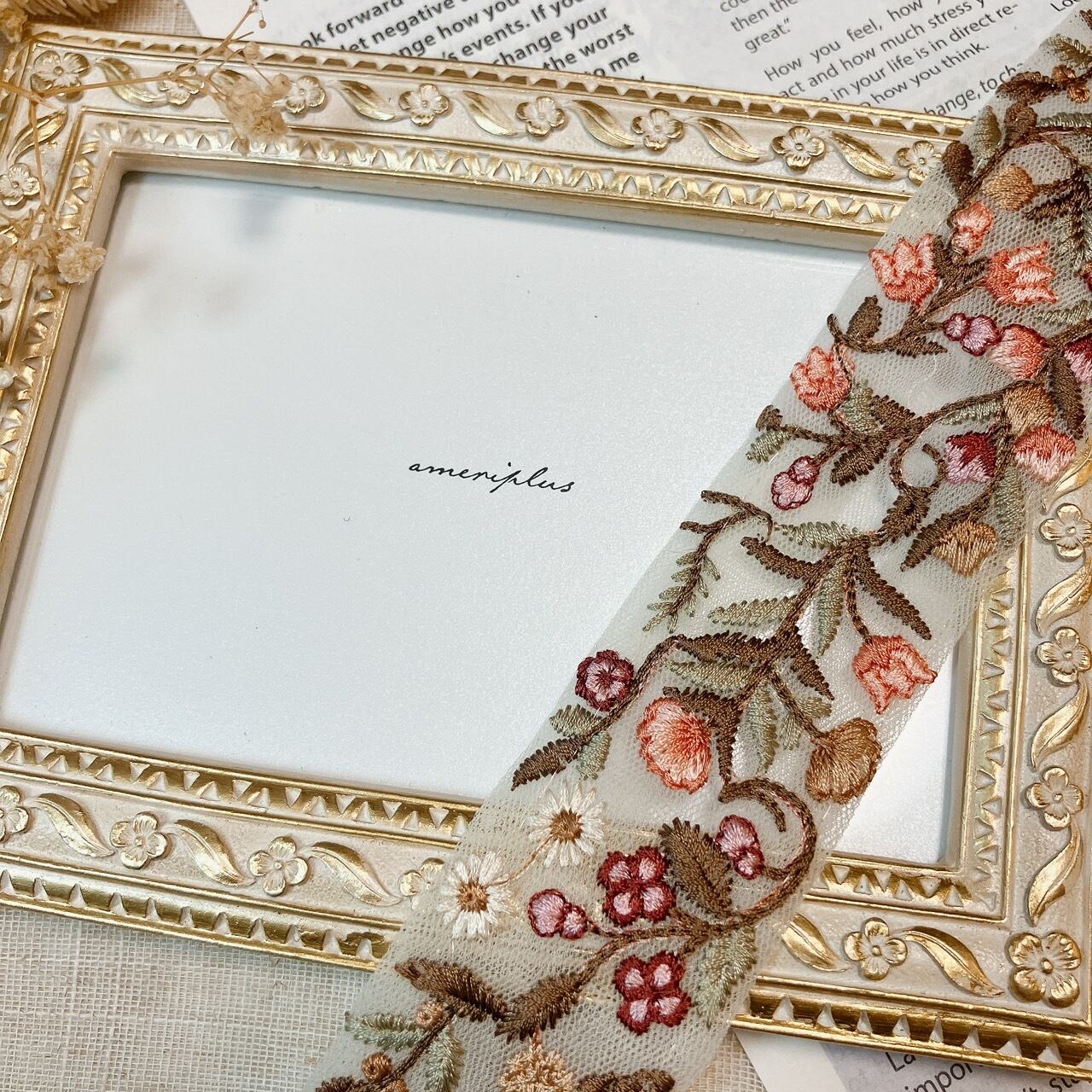 フローラルパレット [キャメルブロッサム]インド刺繍リボン A_0312