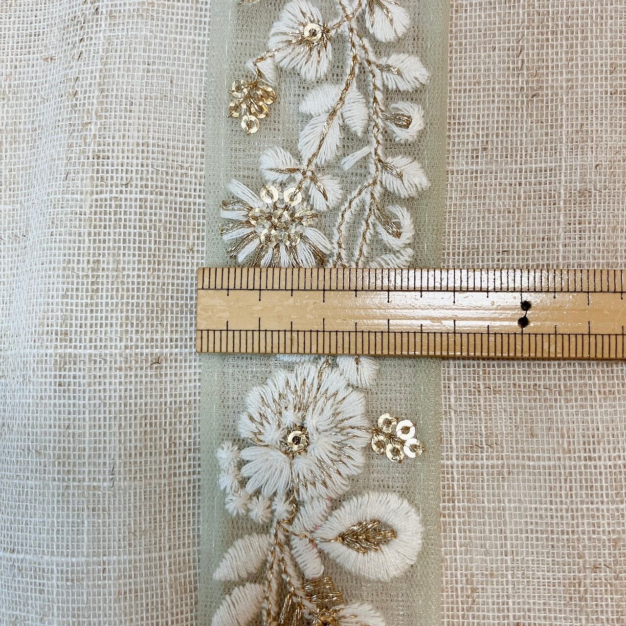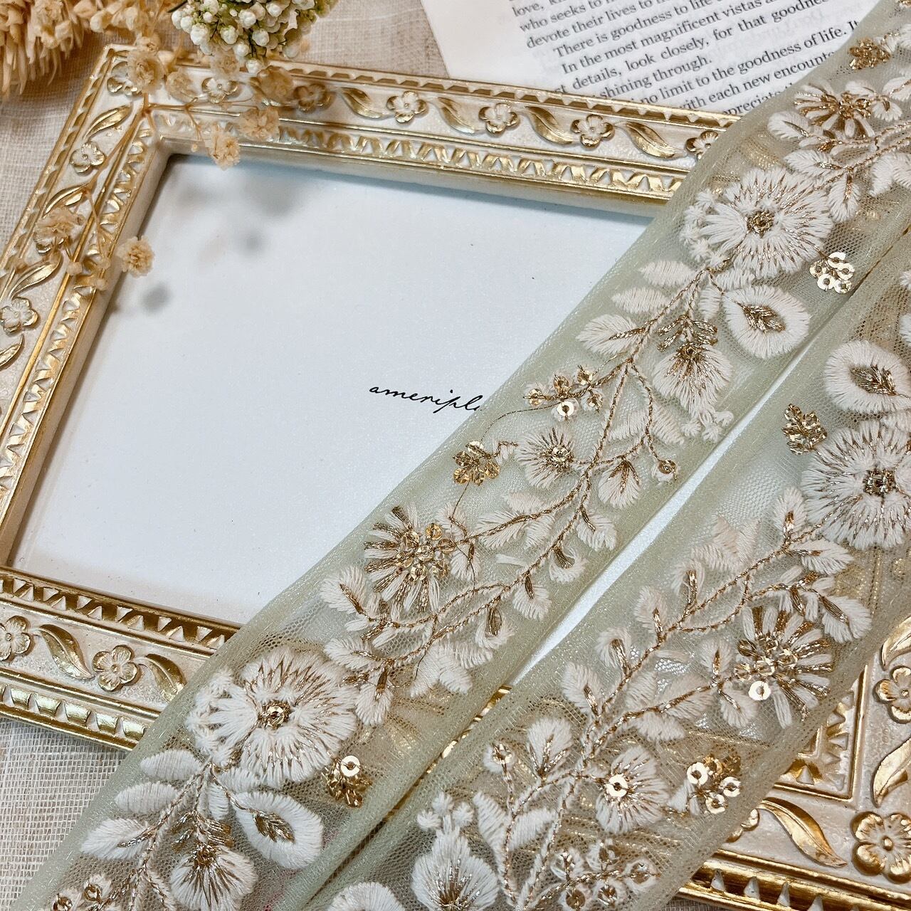 フルールブロッサム [セージグリーン]インド刺繍リボン A_0320