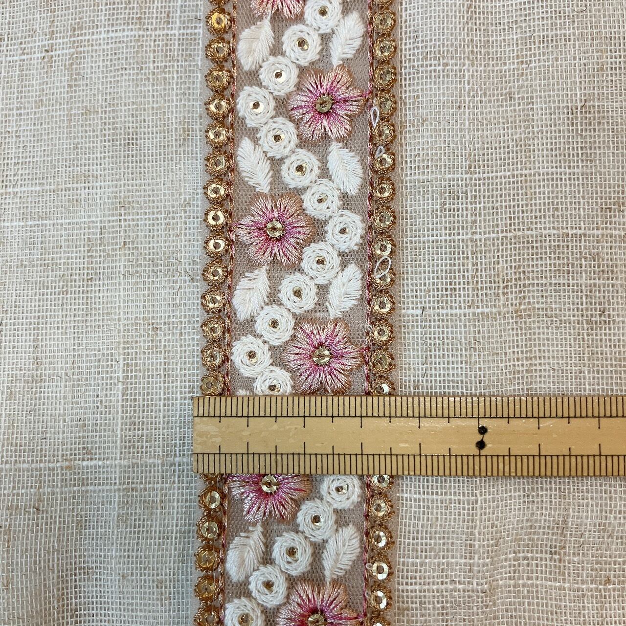 シャイニーブーケ [ピンクブロッサム]インド刺繍リボン A_0323