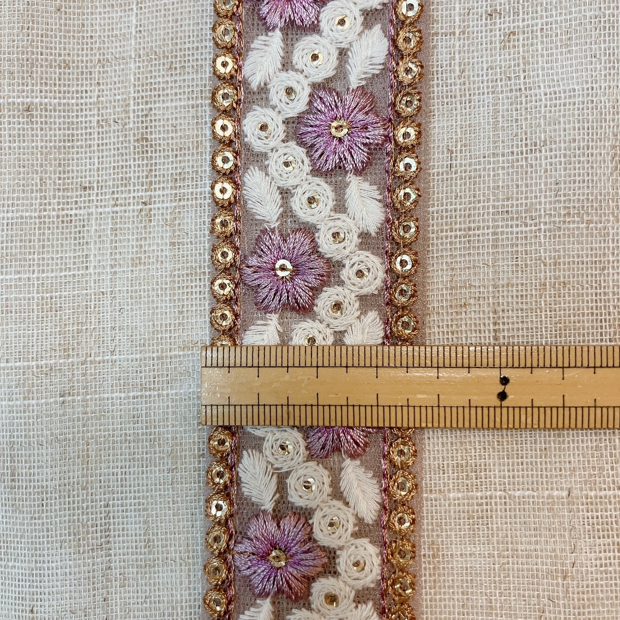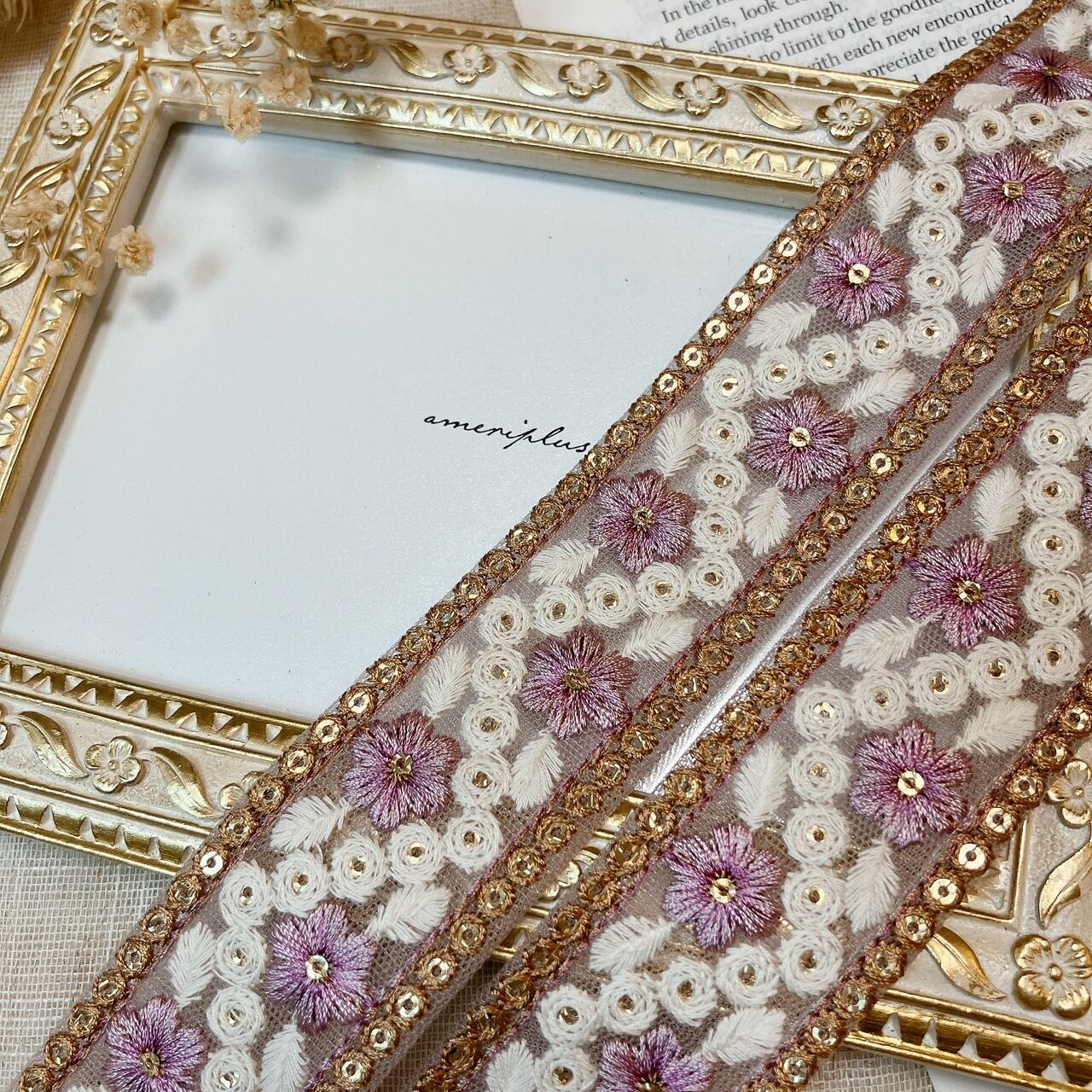 シャイニーブーケ [ラベンダー]インド刺繍リボン A_0327