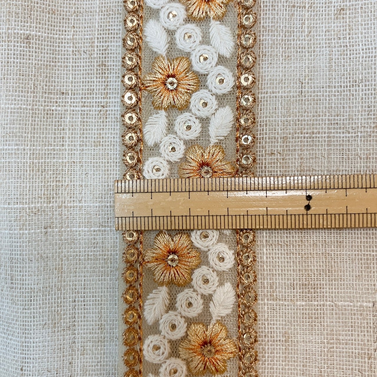 シャイニーブーケ [オレンジゴールド]インド刺繍リボン A_0328